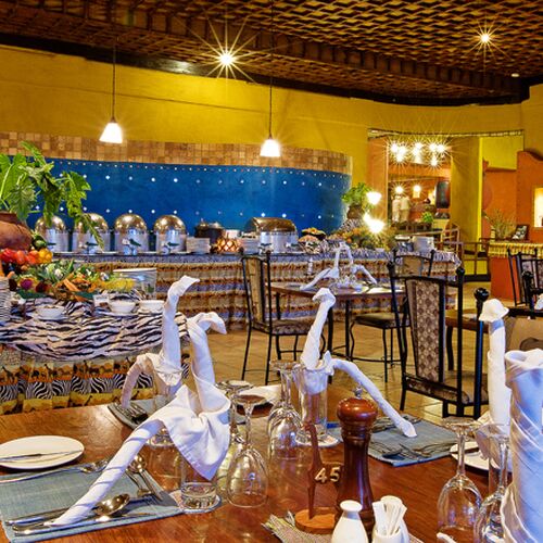 Lodgen organiserer mange forskellige tilbud med spisning i bushen, sundowners med snacks m. fl.