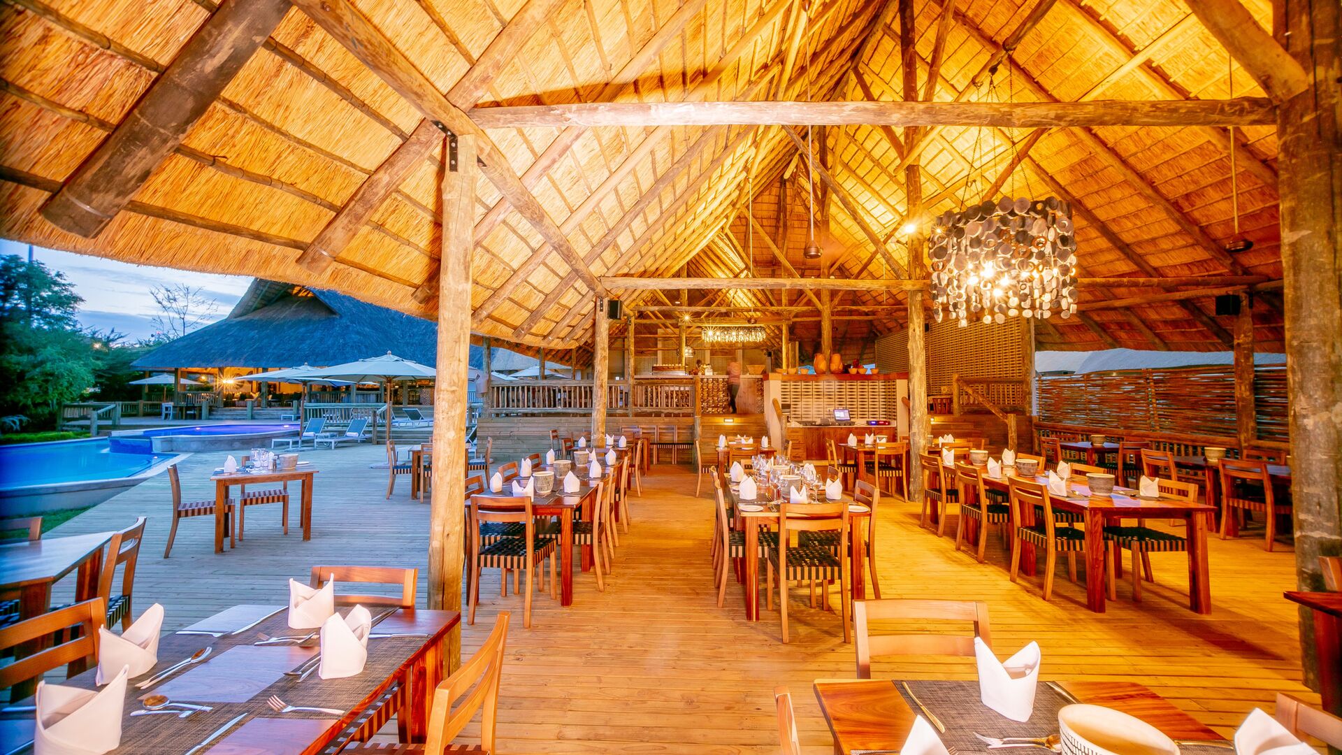 Campen har nogle fællesområder som består af; reception, lounge, bar og poolområde. Samtidig indeholder stedet også spa-faciliteter med f.eks. pedicure og massage. Campen tilbyder både traditionel afrikansk mad retter fra en international menu samt iskolde drikke. Shearwater Explorer Village ejer og driver aktiviteterne ved Victoria Falls, som også gør at de kan tilbyde de bedste priser.