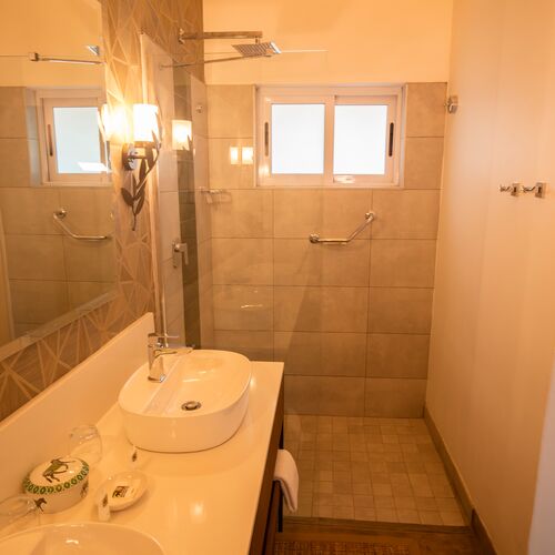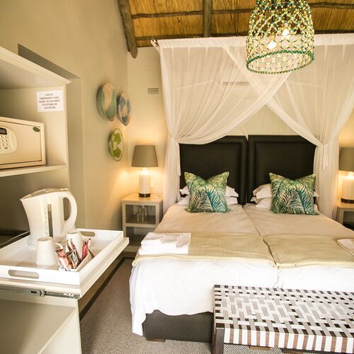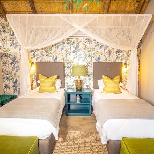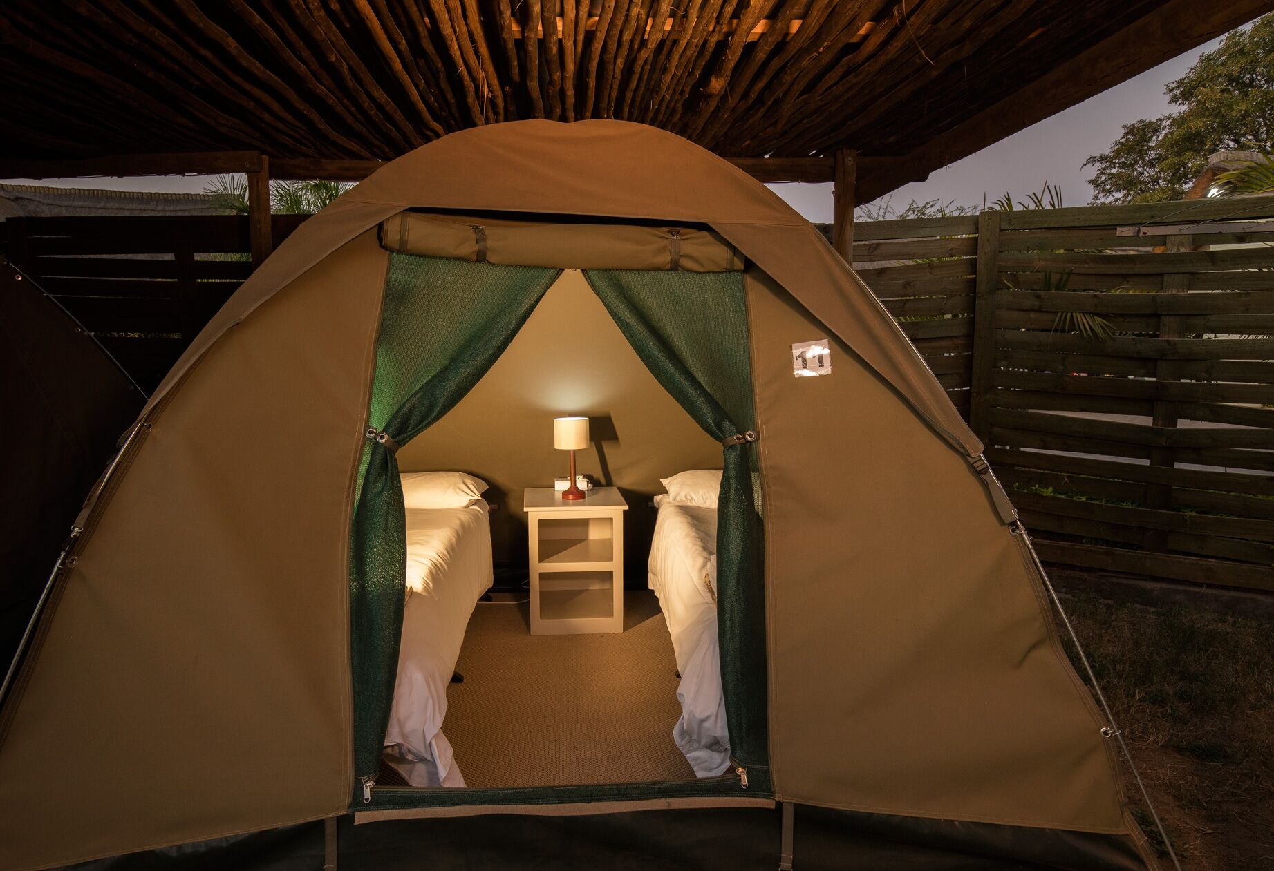 Campen har moderne afvaskingsfaciliteter og 42 private værelser. Værelserne er indrettet i en afslappet og elegant stil. I campen findes der både deluxe hytter og standard hytter. Fælles for begge typer af hytter er at de er stilfulde, men alligevel budgetvenlige. Hytterne er moderne med maksimal komfort og behagelige senge. Hytterne er en-suite med brusebad, og ud for hvert værelse er der en gårdhave, hvor man kan slappe af. Man kan også vælge at sove i kuppeltelte, som er til dem der elsker den unikke spænding ved at sove under lærred underdørs, men som samtidig kan lide lidt luksus. Teltene består af to enkeltsenge, et lille tæppe under fødderne og et lille natbord samt stikkontakt. Der er fire overdækkede, skyggefulde pladser, så teltene er placeret godt i skygge. Tilhørerne området er et køkkenområde, fælles toiletter og brusere i moderne design, flere stik til opladning og mulighed for at vaske tøj.