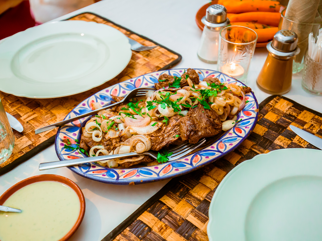 Morgenmaden er omfattet landbrugsprodukter herunder; mælk, yoghurt, flødeost og æg fra deres glade og fritgående høns. Til frokost serveres der treretters menu i gårdstil med stort udvalg af grønsager, salater og velsmagende marineret kød. Aftensmaden byder igen på treretters måltid med levende lys og et bredt udvalg af vine. Der er også mulighed for at få drinks fra deres bar, hvilket er en fantastisk måde at runde dagen af på.