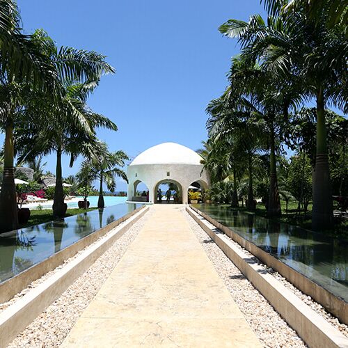 Strandhotellets indretning, arkitektur og udsmykning giver indtryk af en atmosfære, som er påvirket af områdets rige indflydelse fra både afrikansk, arabisk, indisk, og zanzibarisk kultur. Stedet har flere restauranter, hvor dette ses afspejlet i menuerne.
