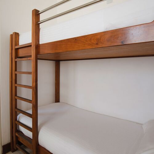 Alle værelser er 43m2 og kan imødekomme 2+1 personer med undtagelse af familieværelserne som er 59m2 og som kan imødekomme 2+3 personer.