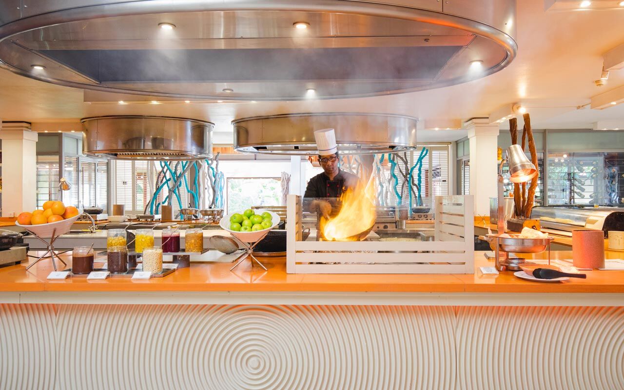 À la carte-servering til lyden af bølgeskvulp. Signaturrestauranten Playa giver mulighed for at mærke sandet under fødderne, mens Middelhav med en mauritisk twist-inspireret menu navigereres. Det er muligt at spise under stjernerne. Komplimenteret af en liste over internationale vine, lokale rom og klassiske cocktails.