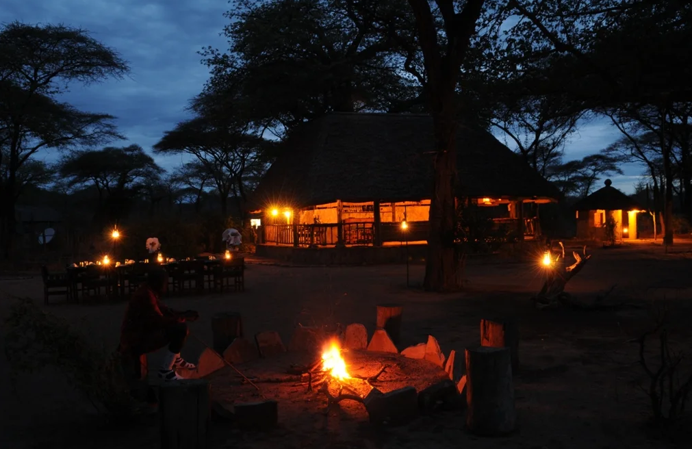 Nyd en overdådig morgenmad med pølser, bacon, æg efter eget valg, frisk mælk, frugtsaft, hjemmebagt brød, syltetøj eller honning, eksotisk frugtsalat og tanzaniansk kaffe eller te. Den to-retters frokost kan serveres i spisestuen eller som en picnic under en safari. En tre-retters middag ved stearinlys serveres normalt under stjernerne i gården ved lejrbålet. Måltiderne er omhyggeligt tilberedt af kokken, og der er ry for lækker hjemmelavet middelhavskøkken, suppleret med et udvalg af vine.