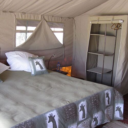 Teltcampen er på private eksklusive campingpladser midt i den afrikanske natur, ofte langt fra andre camps og lodges, så man føler, man har det hele for sig selv. Camp personalet rejser i forvejen med udstyr og proviant, således at campen er klar når I ankommer. Teltene er slået op, maden er klar og vandet er varmet til et dejligt bad.