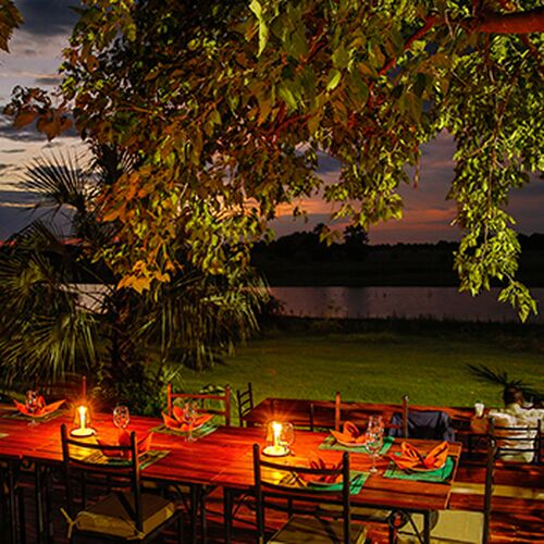 Restauranten på lodgen tilbyder noget fremragende mad med sæsonbetonede lokale råvarer. Udover stedets signaturetter kan man også forvente at finde regelmæssigt skiftende menu baseret på de lokalbaseret råvarer. Baren har udsigt over pool området og floden, hvor man her man nyde solnedgangen til et forfriskende drink i mens man ser vandfuglene ved floden.