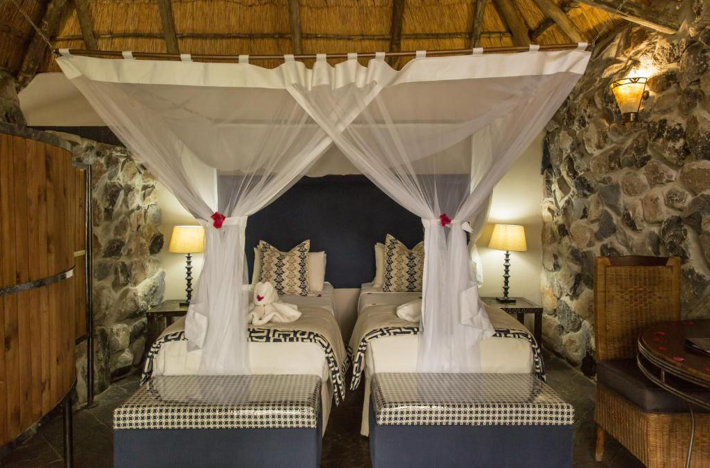 Alle hytterne har te- og kaffefaciliteter, loft- eller stående ventilator, myggenet, digitalt pengeskab, fritstående garderobeplads, skrivebord og eget badeværelse med bruser. Hver hytte har en lille terrasse med udendørs siddepladser og udsigt over floden.