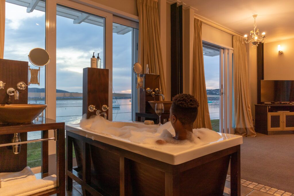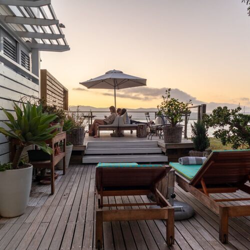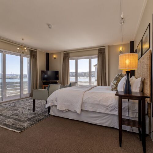 Det familie ejede boutique hotel ligger på øen Thesen med udsigt direkte over vandet.