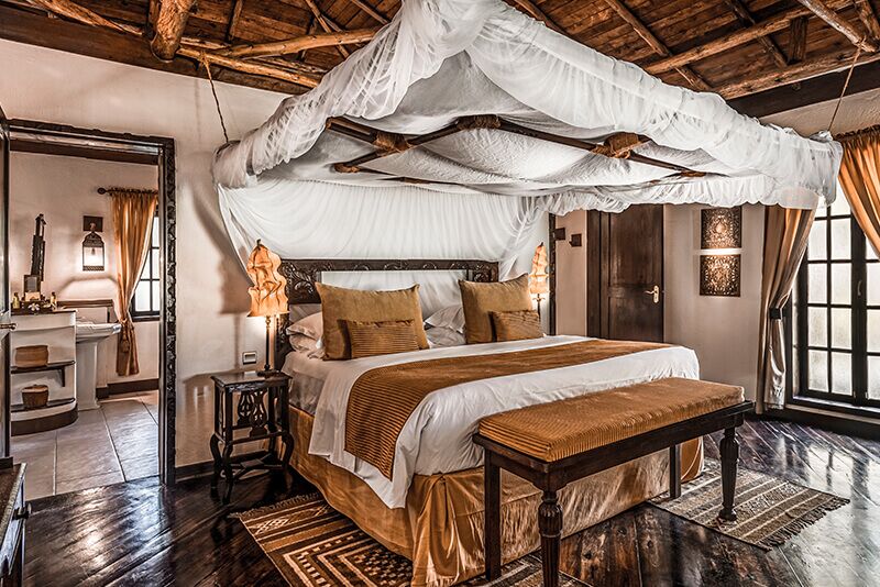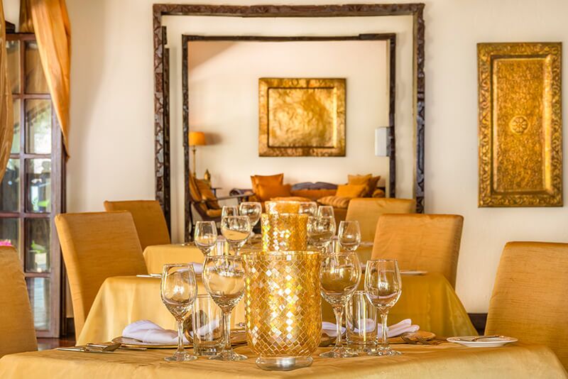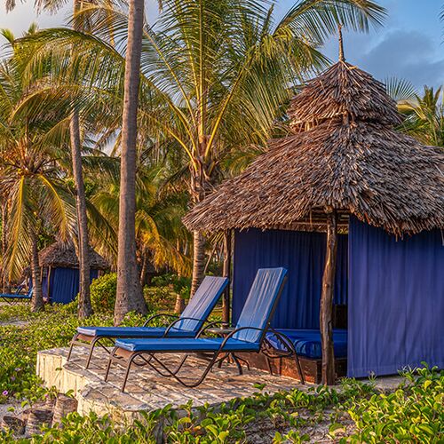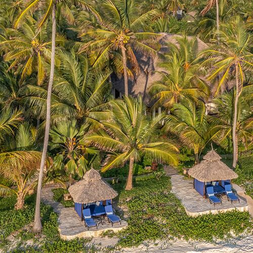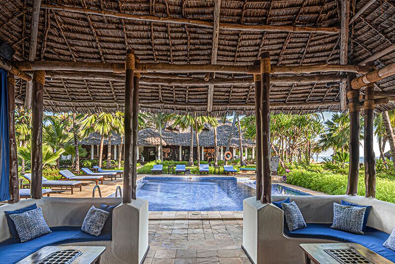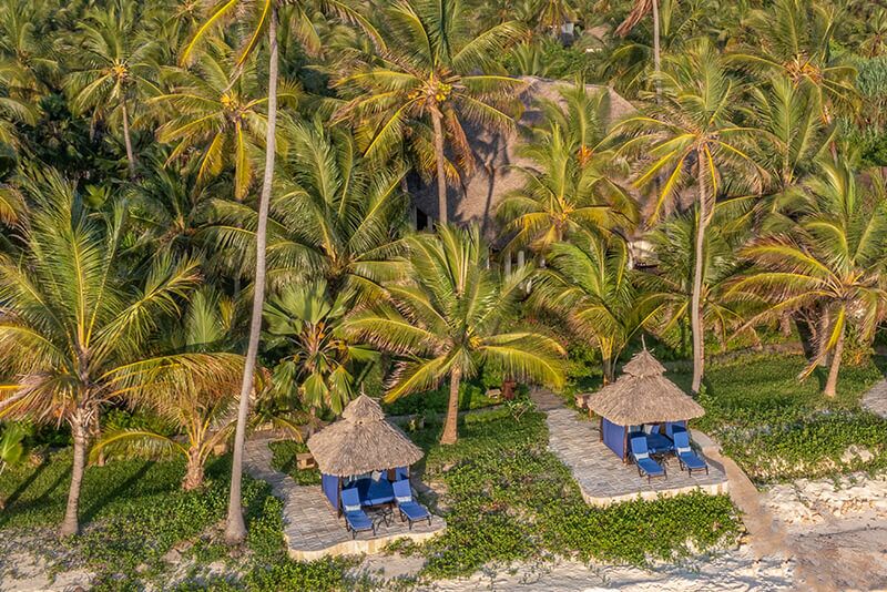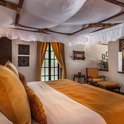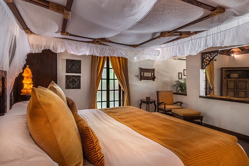 Hver villa byder på en sofistikeret indretning i nuancer af kaffe og fløde, hvor lette, karamel farvede gardiner blafrer, mørke polerede trægulve strækker sig ud, og indretningen udgør et unikt ægteskab mellem kolonial pragt og traditionelt design. På verandaen accentueres en himmelstrøet himmelseng i Zanzibar-stil af en neddykket, midnatsblå plaskepool med en vidunderlig udsigt over Det Indiske Ocean.