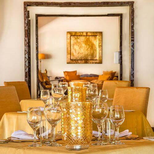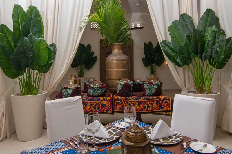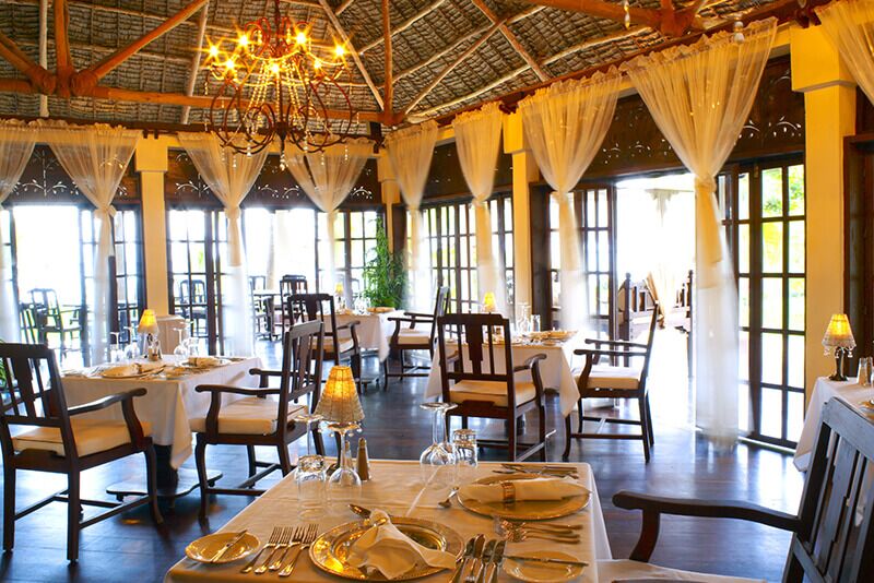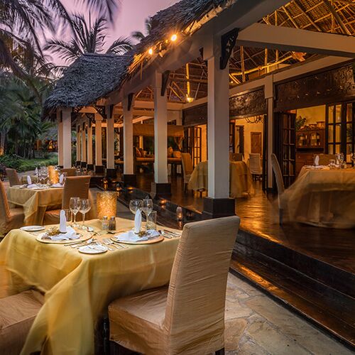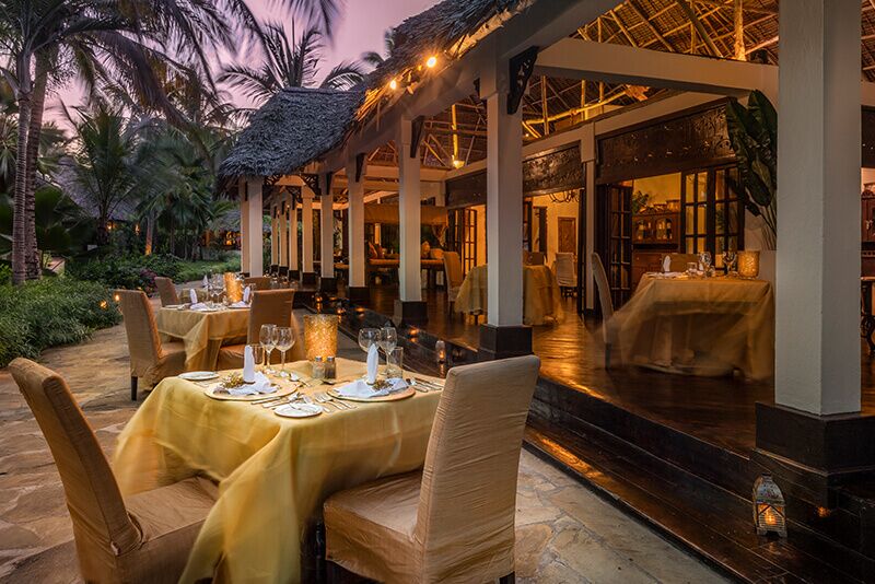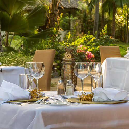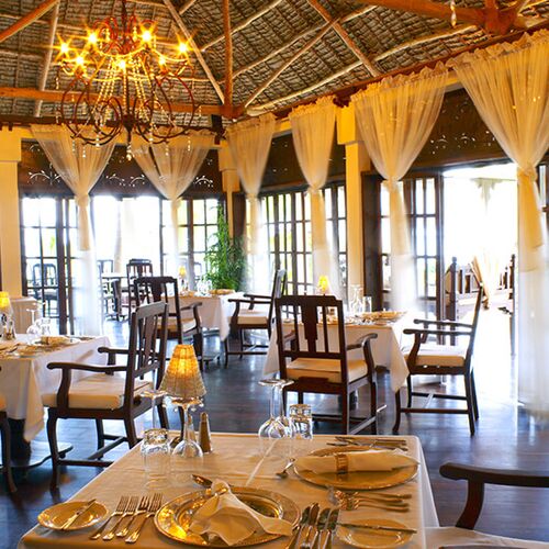 På The Palms, Zanzibar er spiseoplevelserne en fryd. Det kulinariske team har sammensat en menu, der afspejler den magiske blanding af arabisk, indisk, persisk, asiatisk og swahili smag, som definerer den traditionelle zanzibariske køkken. Øens bedste lokalt dyrkede produkter præsenteres også, og da menuen ændrer sig dagligt, formår ferieresortet at fremvise alle facetter af Spice Island's gamle arv. Menuen omfatter også kokkens præsentation af en række kontinentale retter, og naturligvis er holdet tilgængelig for at imødekomme eventuelle kostpræferencer.
