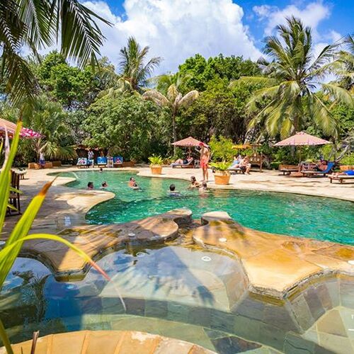 Hotellet er firestjernet og er specielt designet til at blende ind i naturen. Her er en afslappet atmosfære, hvor der er rig mulighed for at være privat.