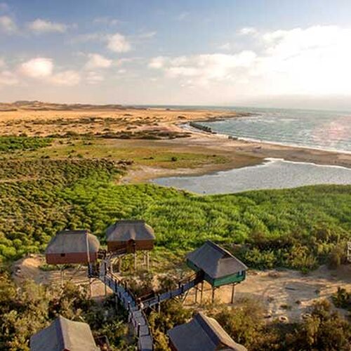 The Stiltz er unik i enhver aspekt, men især den meget spektakulære udsigt over Swakopmund gør, at lodgen er et besøg værd. Fra lodgen er der udsigt til Atlanterhavet, Namib sandklitterne og den fuglerige lagune nær floden for ikke at nævne de mange uforglemmelige solnedgange, man har smukke udsigter til.
