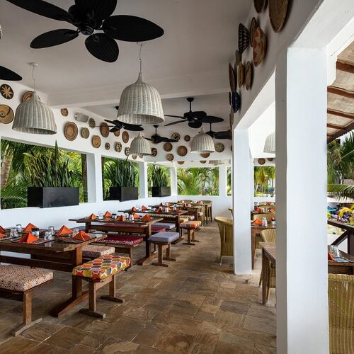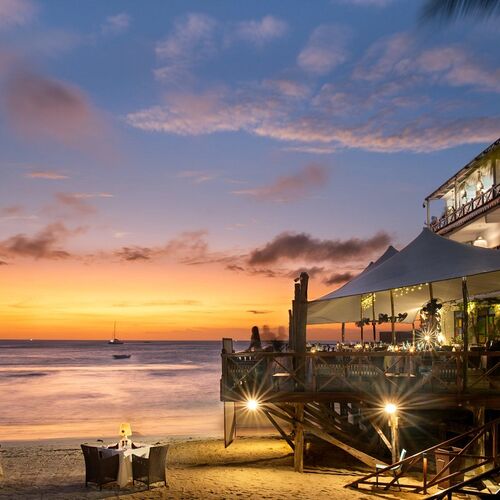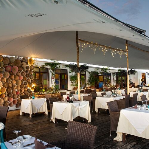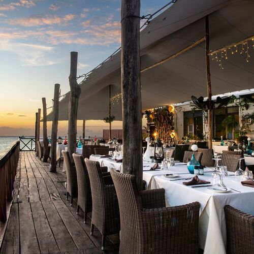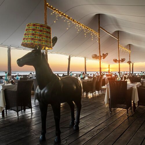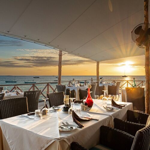 Signatursalgsrestauranten, Sexy Fish, åbner kl. 19.30 og serverer en fusion af afrikansk-europæiske skaldyrsretter, herunder friskfanget fisk, hummer og krabbe, krydret med Zanzibars krydderier.