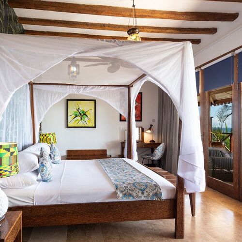 Værelserne er placeret på 1. og 2. sal og giver en panoramisk udsigt fra den nordlige spids af Nungwi ud over Tanga-bjergene og ned ad øens vestkyst. Værelserne er bade i naturligt lys, der fortsætter indtil aftenens blodrøde solnedgang.