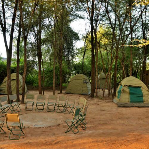 Thebe River Safaris tilbyder også campingpladser. For et simpelt og praktisk indkvarteringsvalg tilbyder Thebe River Safaris' lejrplads rummelige campingområder med skyggefulde madlavnings-/braai-områder og fælles toiletter, herunder 2 store fælles toiletblokke med brusere, rigelig varmt vand, vaske, spejle og toiletter. De fleste af vores pladser har en vandhane, og der er en strømforsyning på lejrpladsen.