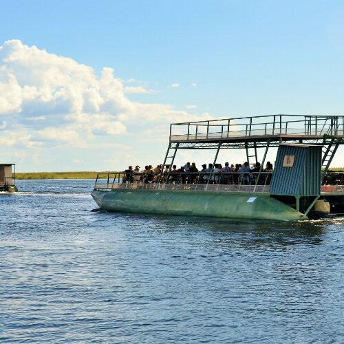 Nyd en Thebe River Safaris gamedrive ind i den fantastiske Chobe National Park eller en afslappende solnedgangskrydstogt på Chobe River, hvor dyrelivet er rigt og chancerne gode for at se noget spektakulært.