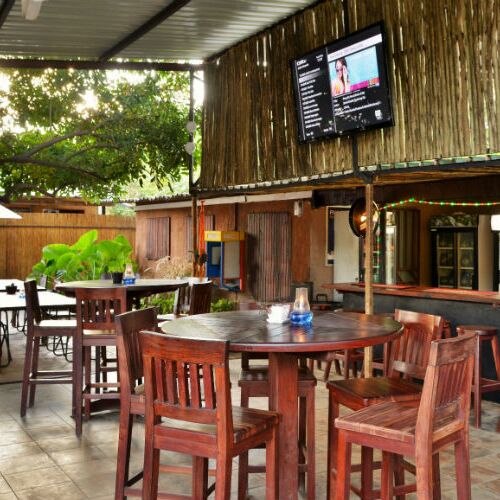Thebe Bar's livlige atmosfære gør det til et populært mødested, hvor der serveres lokale og internationale drikkevarer og cocktails, og med den ekstra bekvemmelighed med gratis WiFi og et satellit-tv, så du kan følge med i alle de seneste internationale nyheder og sport.