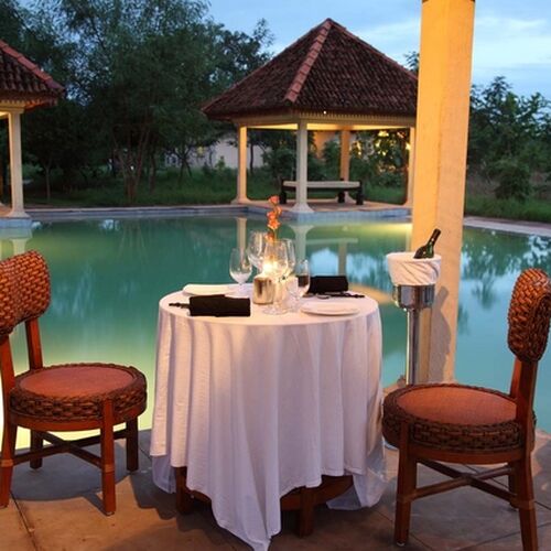 Fra lodgen fornemmer man nærheden af den store afvekslende park, hvor bl.a. tiger og leopard findes. Den er velplaceret i parkens bufferzone og designet til at tilpasse sig den hjemmehørende kultur, hvilket gør, at det unikke jungle-tema bevares og gør stedet til en unik feriedestination.