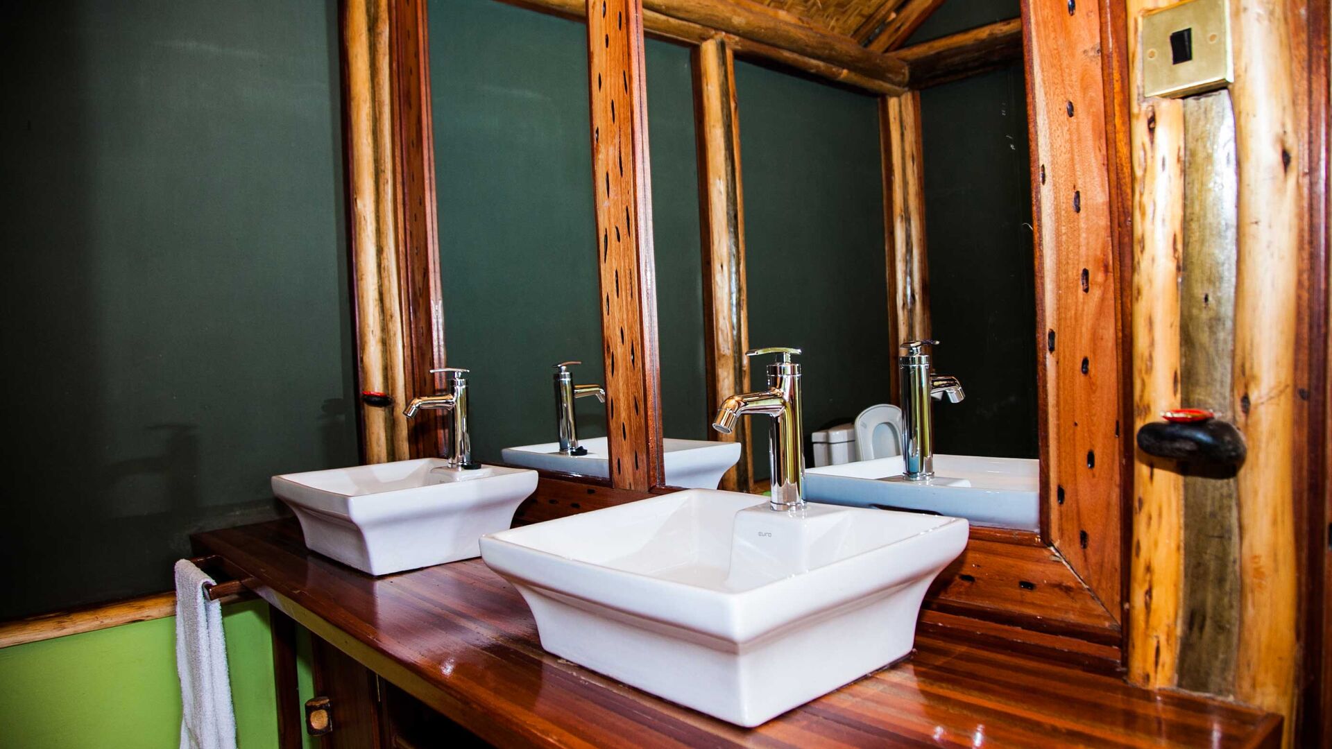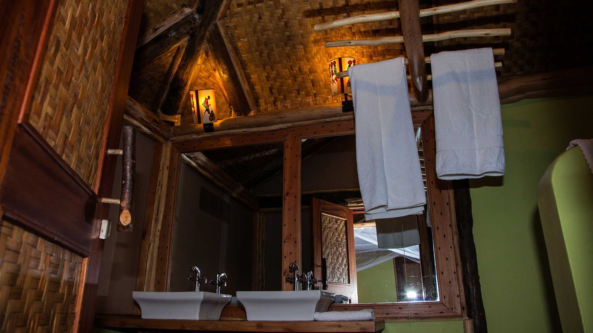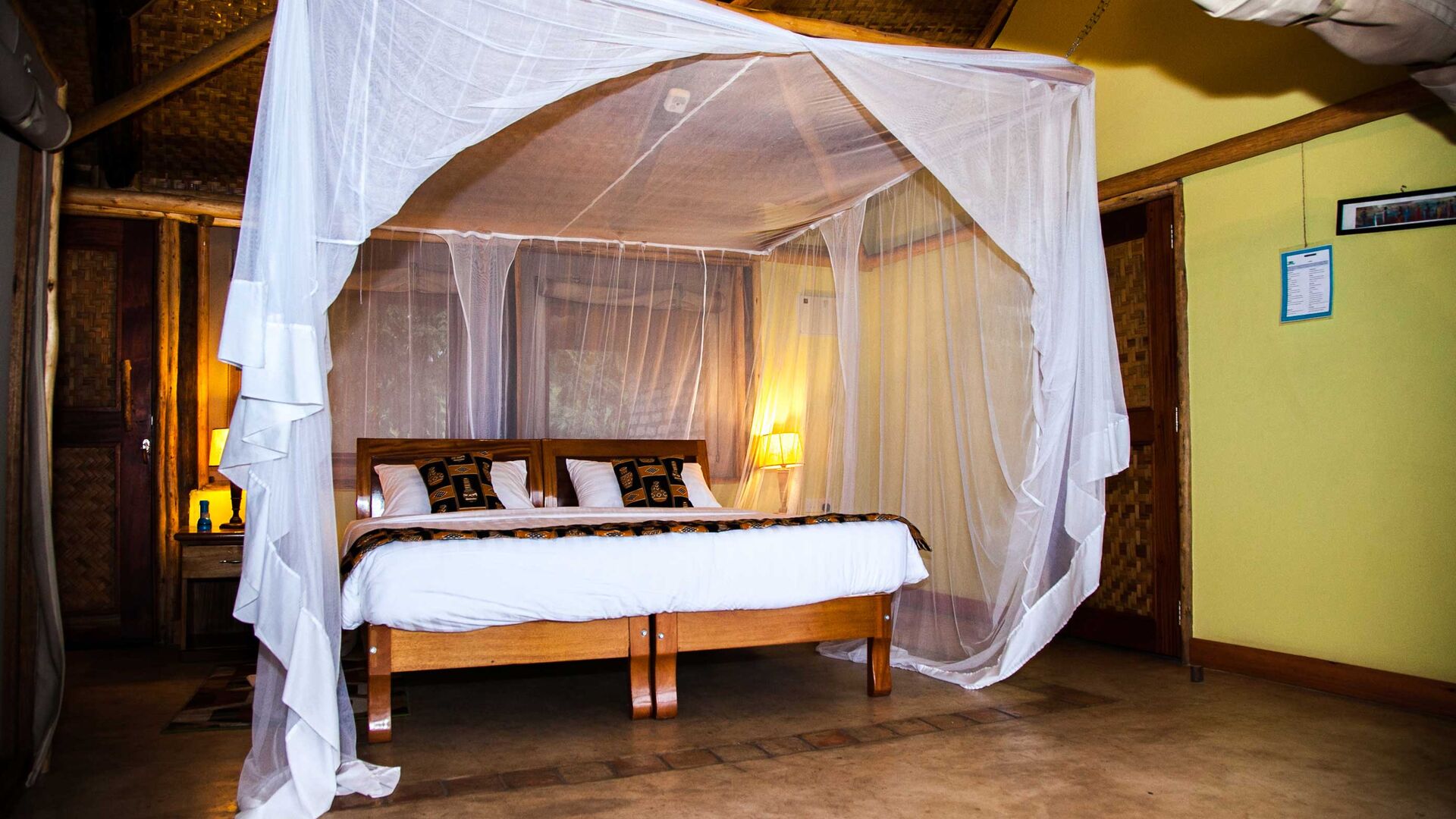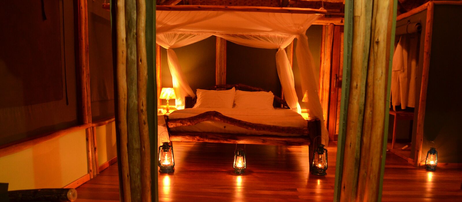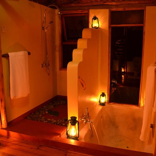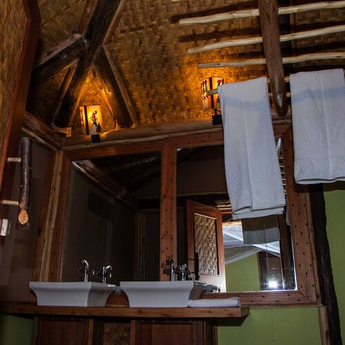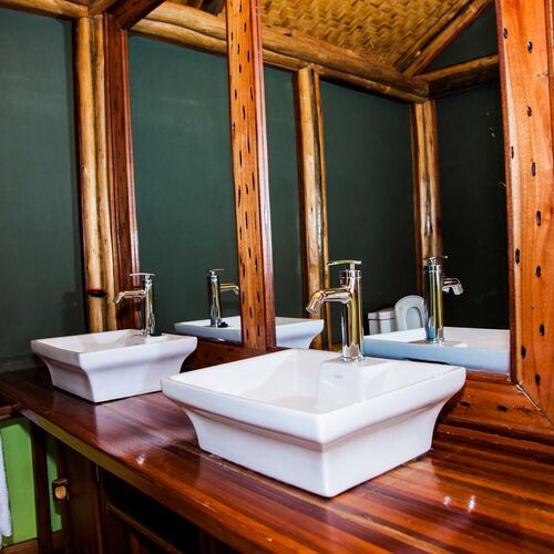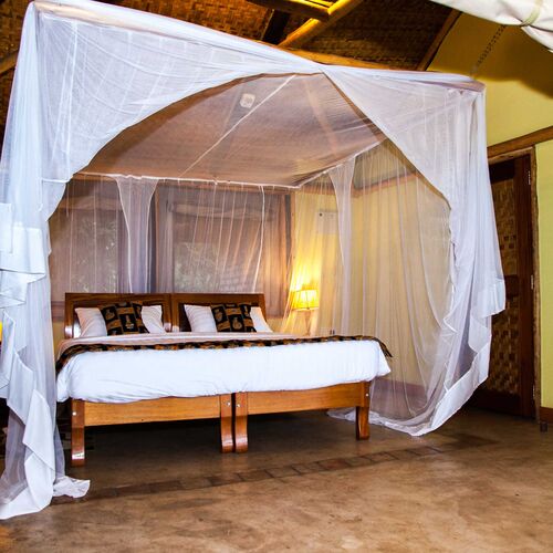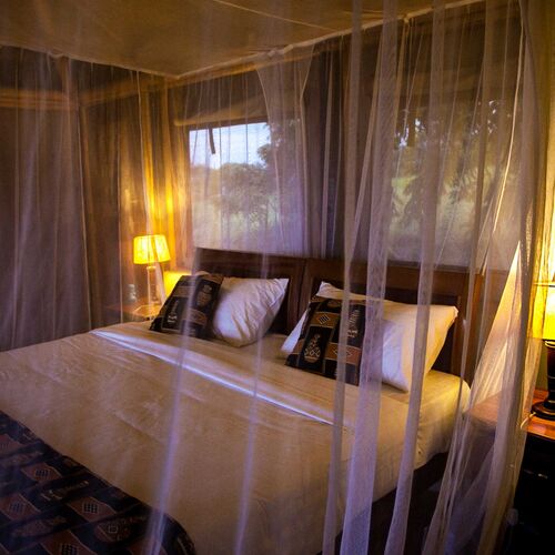 Twin Lake Safari Lodge byder på 8 pragtfulde og meget rummelige telte, som alle har overdækket tag. Alle værelserne har et suite-badeværelse med eget toilet, varmt vand samt badekar.
