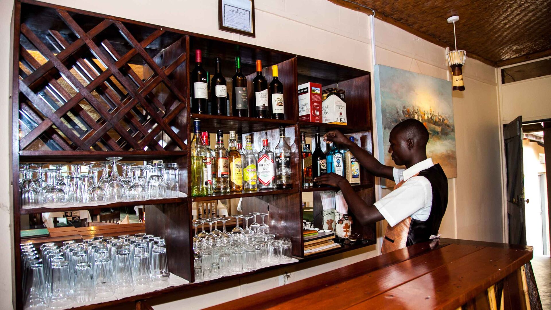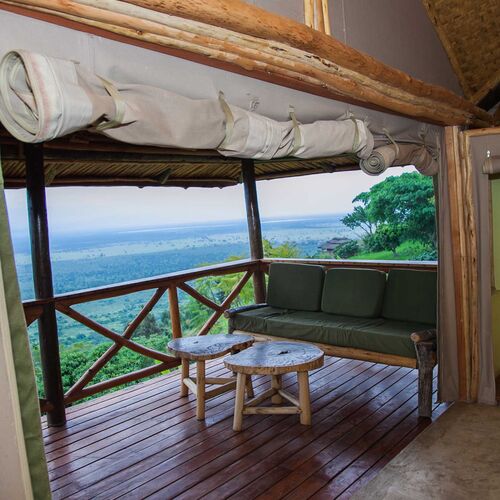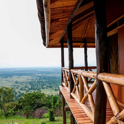 Lodgen ligger 270 meter over jordens overlade, ganske få meter fra Queen Elizabeth National Park. Dette giver en fantastisk udsigt, hvor man kan se flotte "sundowners".
