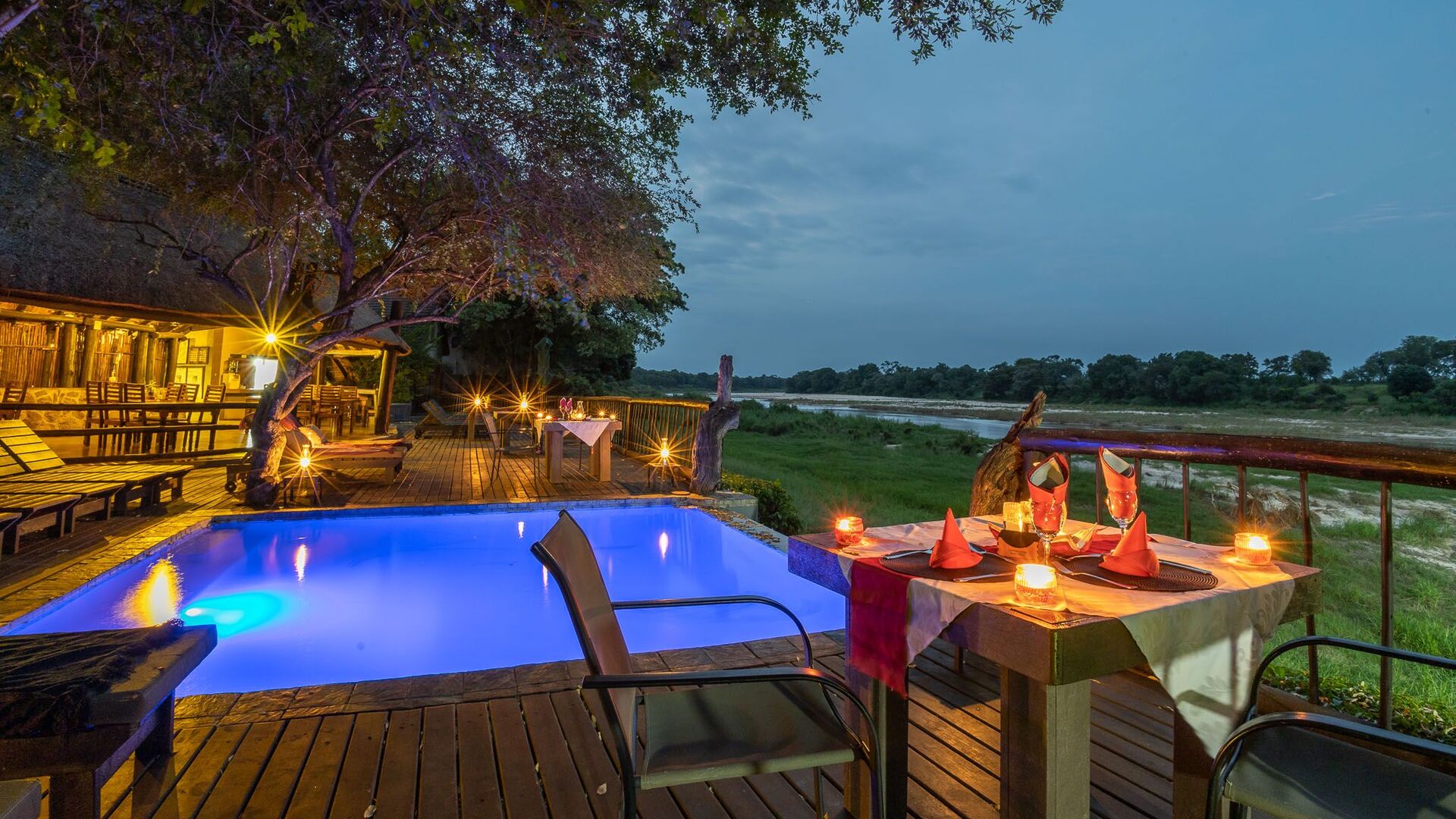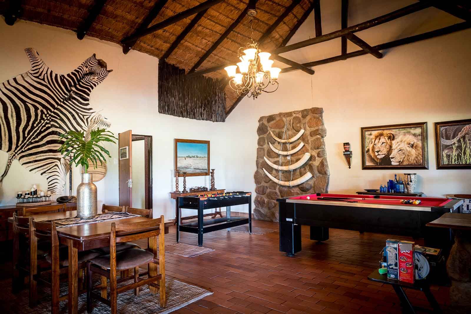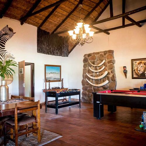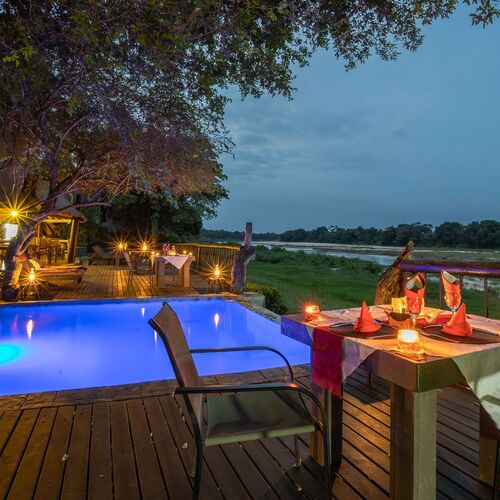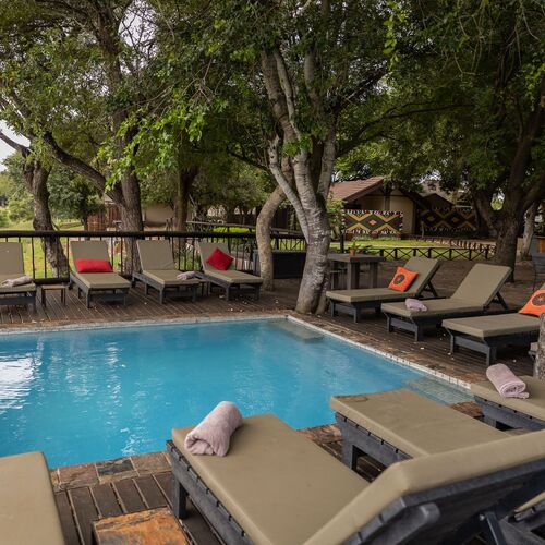 Hovedområdet inkluderer et smukt indrettet poolområde med udsigt over Sand River, en hyggelig opholdsstue med billardbord og en terrasse. Fra solstolene ved poolen kan gæsterne afslappet observere bøfler, leoparder og løver ved bredden af Sand River. Værelserne er tilgængelige via en snoet sti gennem et grønt område, hvor vortesvin og buskbukke ofte ses.