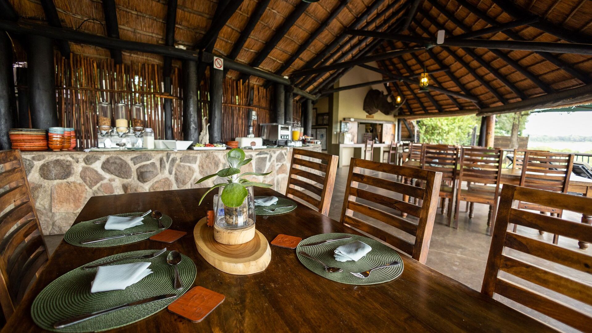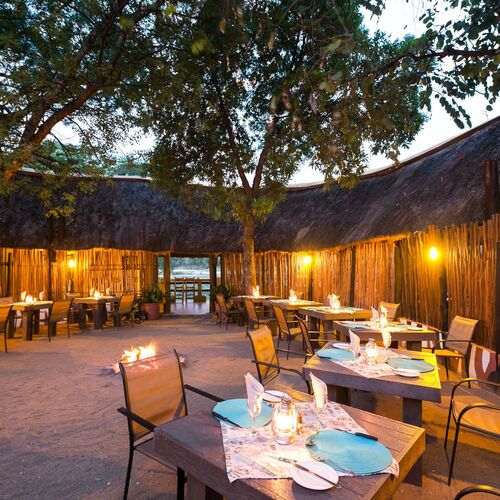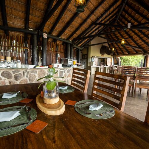 Umkumbe tilbyder udendørs spisning i traditionel safari-stil, hvor gæsterne spiser sammen i den åbne boma. Bordene er centreret omkring et bål, som ofte er samlingspunktet for aktiviteter efter aftensmaden. Guiderne kommer ofte og sætter sig sammen med gæsterne for at besvare spørgsmål om dagens safari. Aftensmad serveres på et fast tidspunkt efter den sene game drive, og der er altid et udvalg af velsmagende retter tilgængelige i buffet-stil.