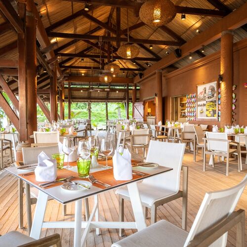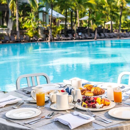 Hotellet har fire restauranter, der tilbyder noget for enhver kulinarisk smag. Alle restauranter er placeret tæt ved stranden, så man får den tropiske fornemmelse, som Mauritius byder på. Der er også rig mulighed for at tage plads i Le Bar, hvor man kan nyde en afslappet stemning til en smuk solnedgang, i mens man drikker en lækker drink eller cocktail.