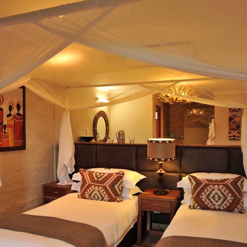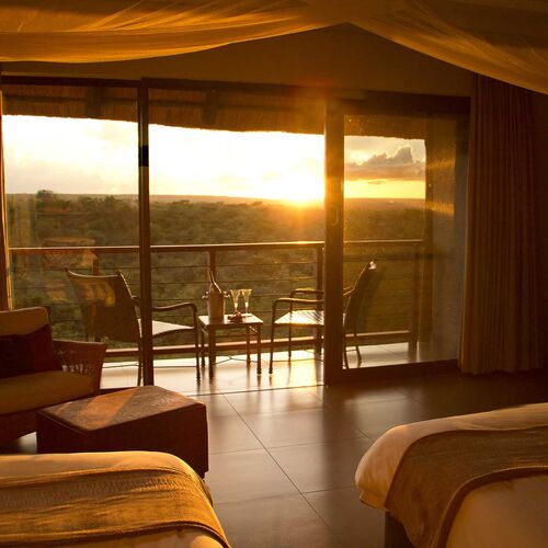 Under et ophold på dette lækre boutiquehotel bliver man forkælet med personlig butlerservice, eftermiddagste og kaffe med hjemmelavet bagværk, cocktails og canapeer ved solnedgang med udsigt til det nærliggende vandhul, hvor man kan opleve bl.a. elefanter komme for at drikke, Zambezifloden og den afrikanske solnedgang. Der er blot få km ind til selve Victoria Falls by og de verdensberømte vandfald, og hotellet har shuttle service ind til byen hver time i dagtimerne.