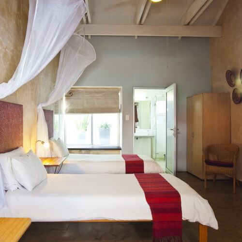 Værelserne er indrettet med et afrikansk touch og har eget badeværelse, TV, telefon, minibar, fane, myggenet samt kaffe og the. Fra værelserne er der udgang til enten balkon eller terrasse.