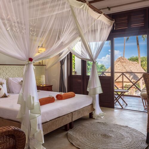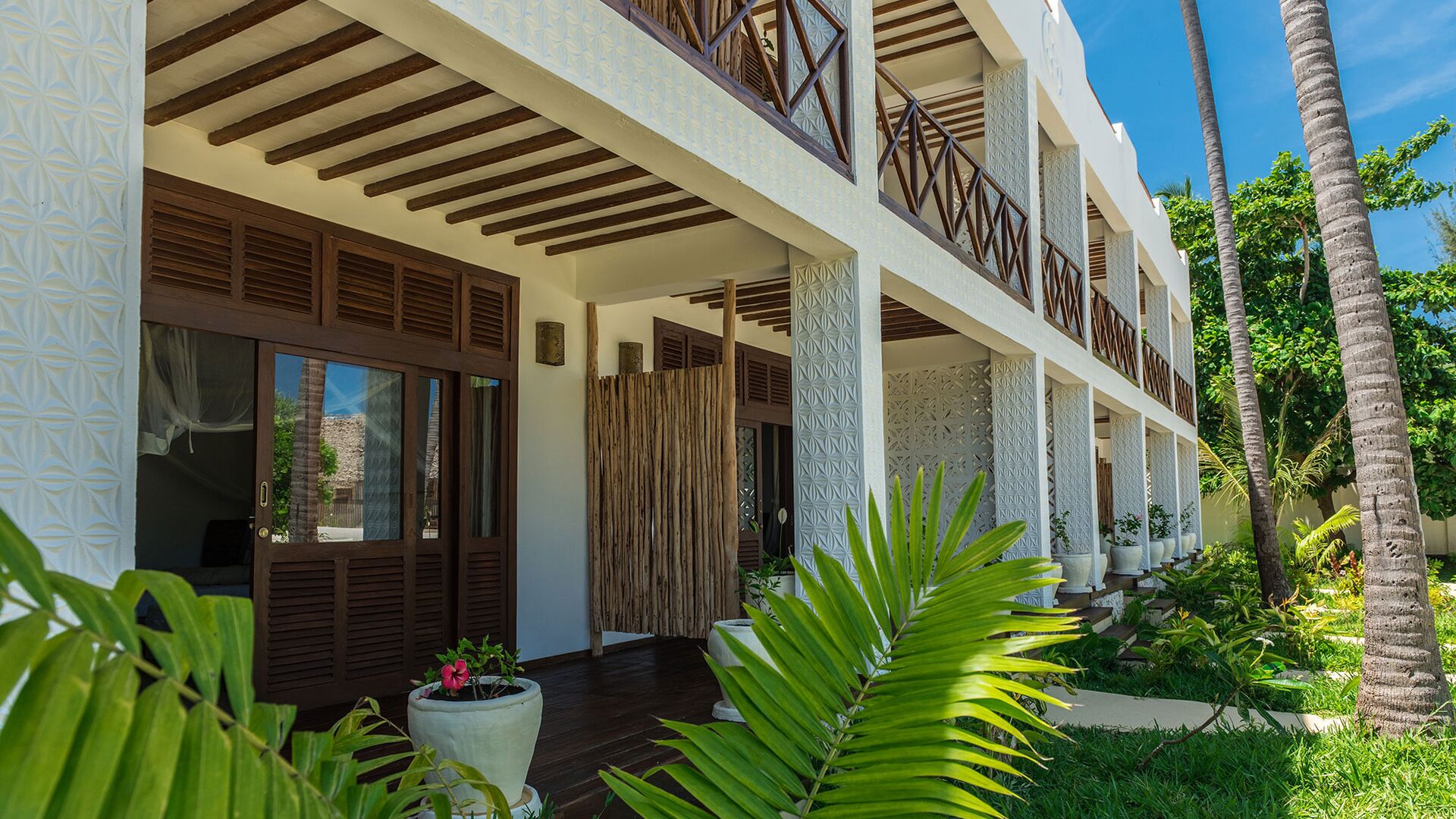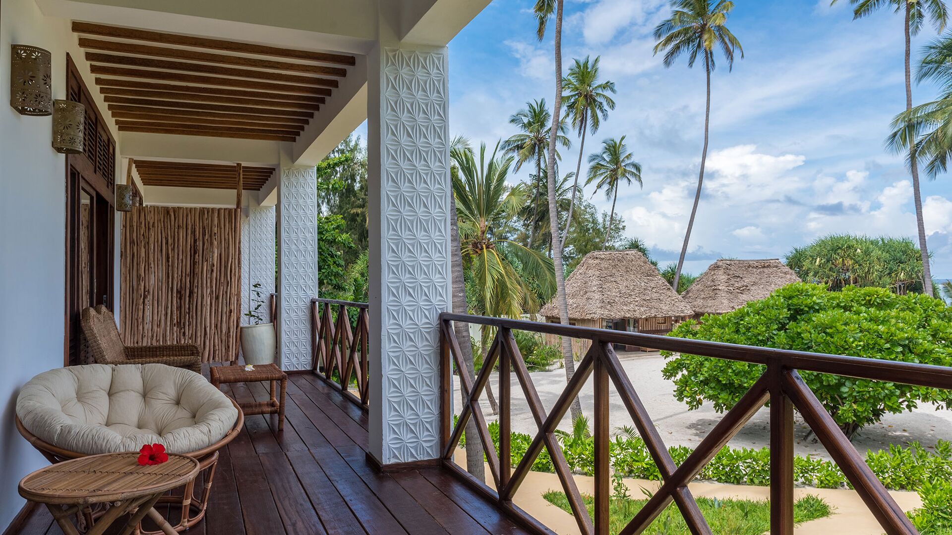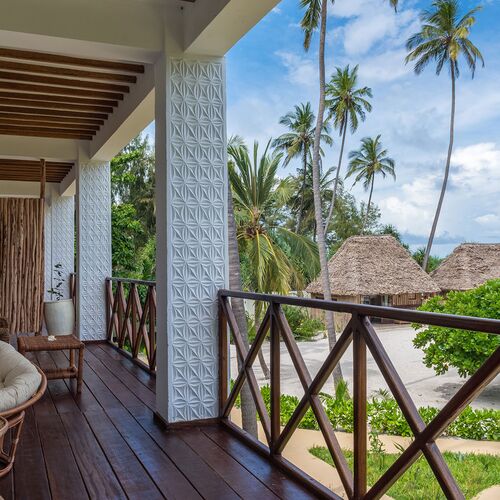 Alle værelser på dette skønne hotel har egen terrasse med udsigt til flotte palmer og (delvis) havudsigt til det turkisblå Indiske Ocean.