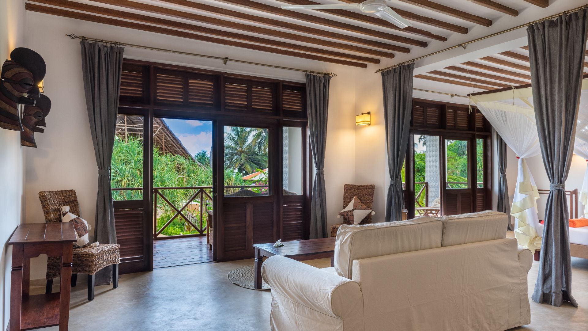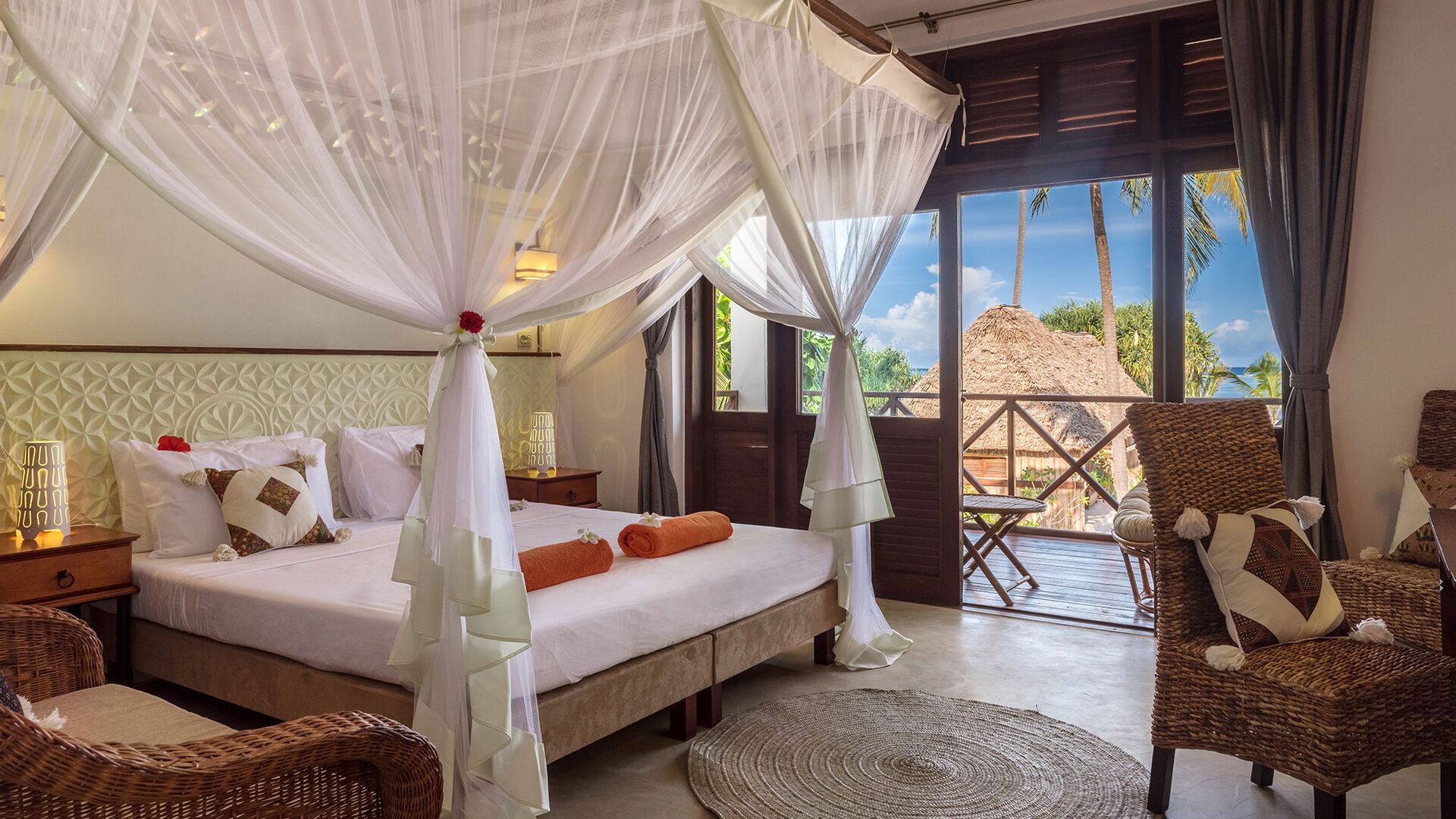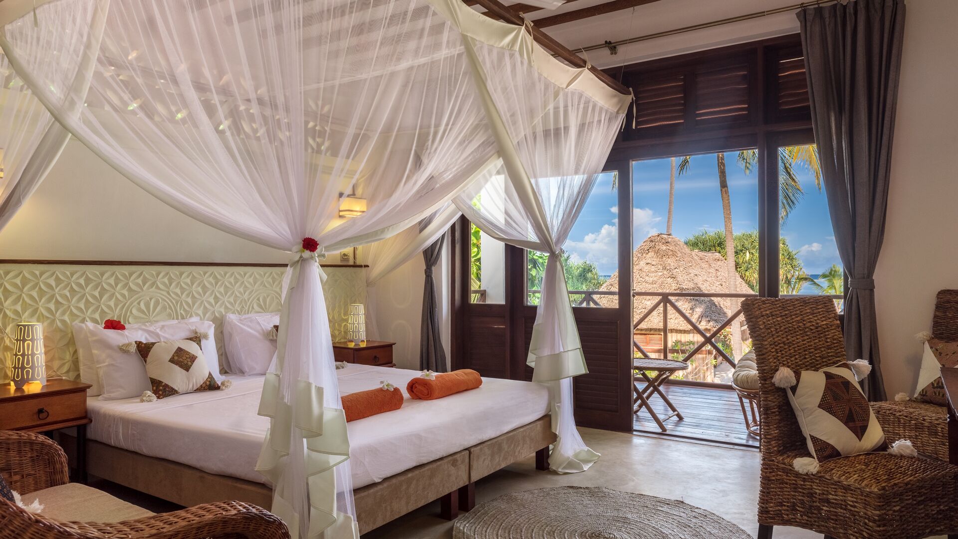 Alle værelser på dette skønne hotel har egen terrasse med udsigt til flotte palmer og (delvis) havudsigt til det turkisblå Indiske Ocean.