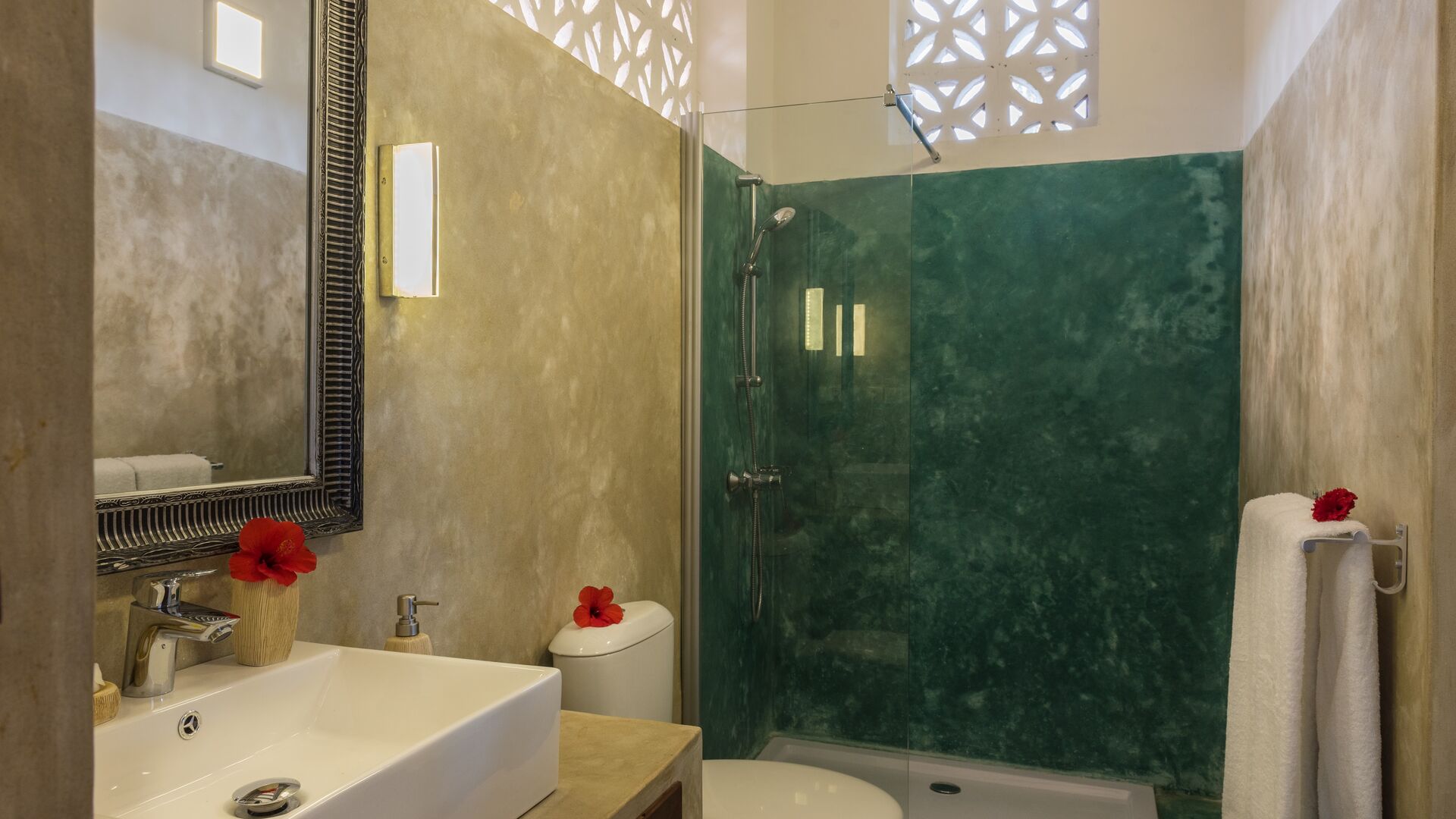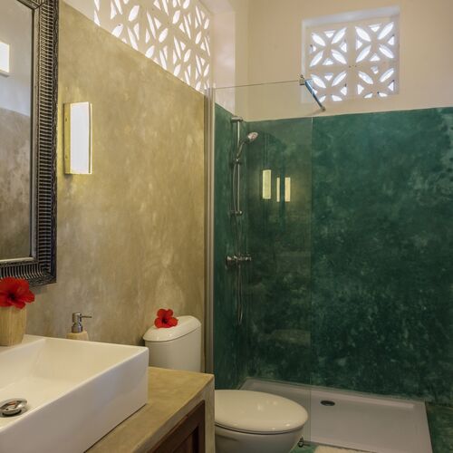 12 km fra hotellet, stadig på stranden, ejer hotellet en villa der kan lejes af større vennegrupper eller familier. Villaen består af 5 soveværelser: 2 dobbeltværelser en-suite med pool og havudsigt, 1 dobbeltseng og 2 twin senge, der deler 3. badeværelse. Et af soveværelserne har en sofa, der kan rumme 2 ekstra personer. Der er separat stue og køkken. Her vil en ansat komme og gøre rent hver dag samt tilberede morgenmaden. Ellers er man på egen hånd. Denne villa er perfekt hvis man har planer om at udforske øen på egen hånd eller vil have meget privatliv.
