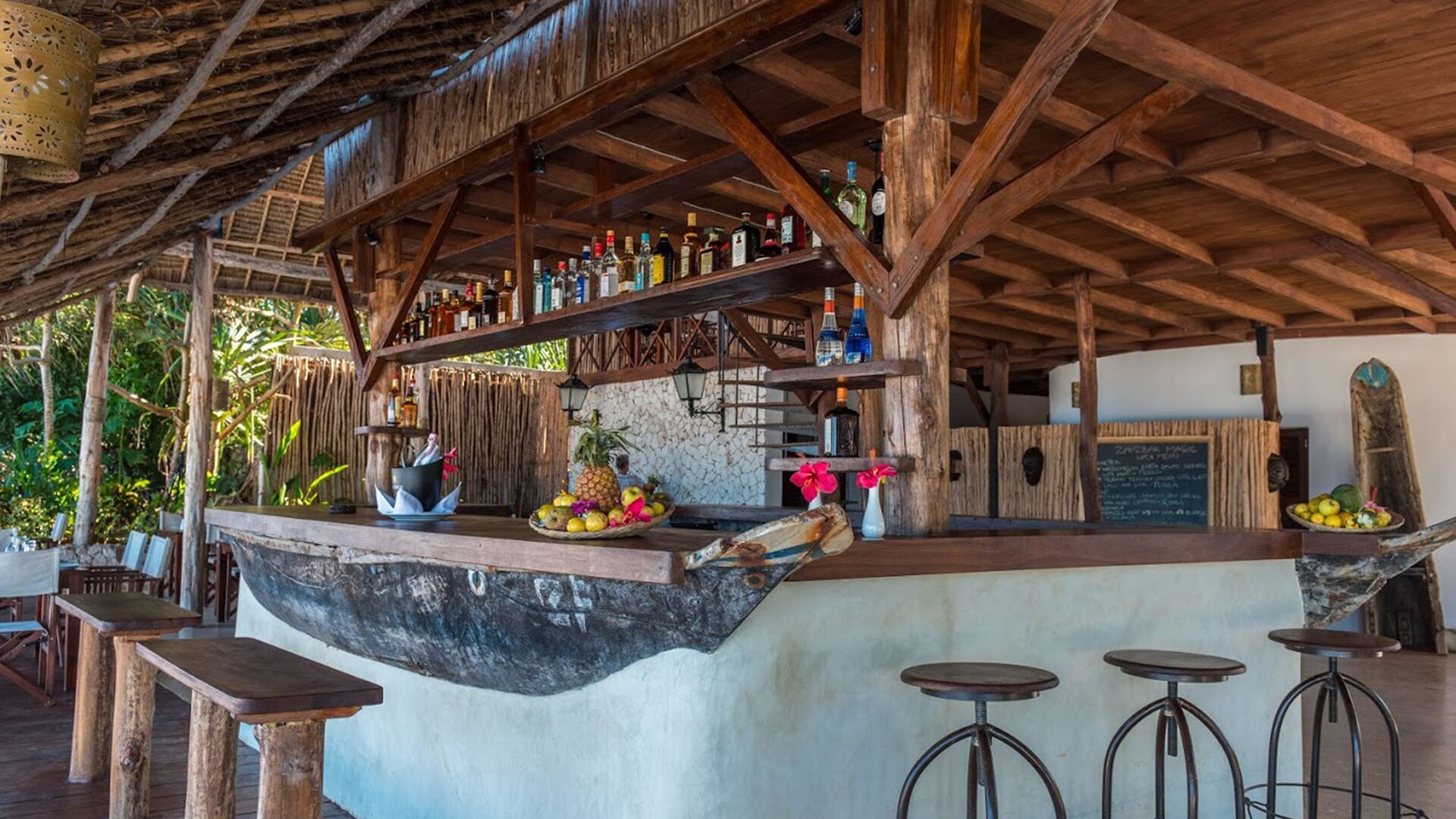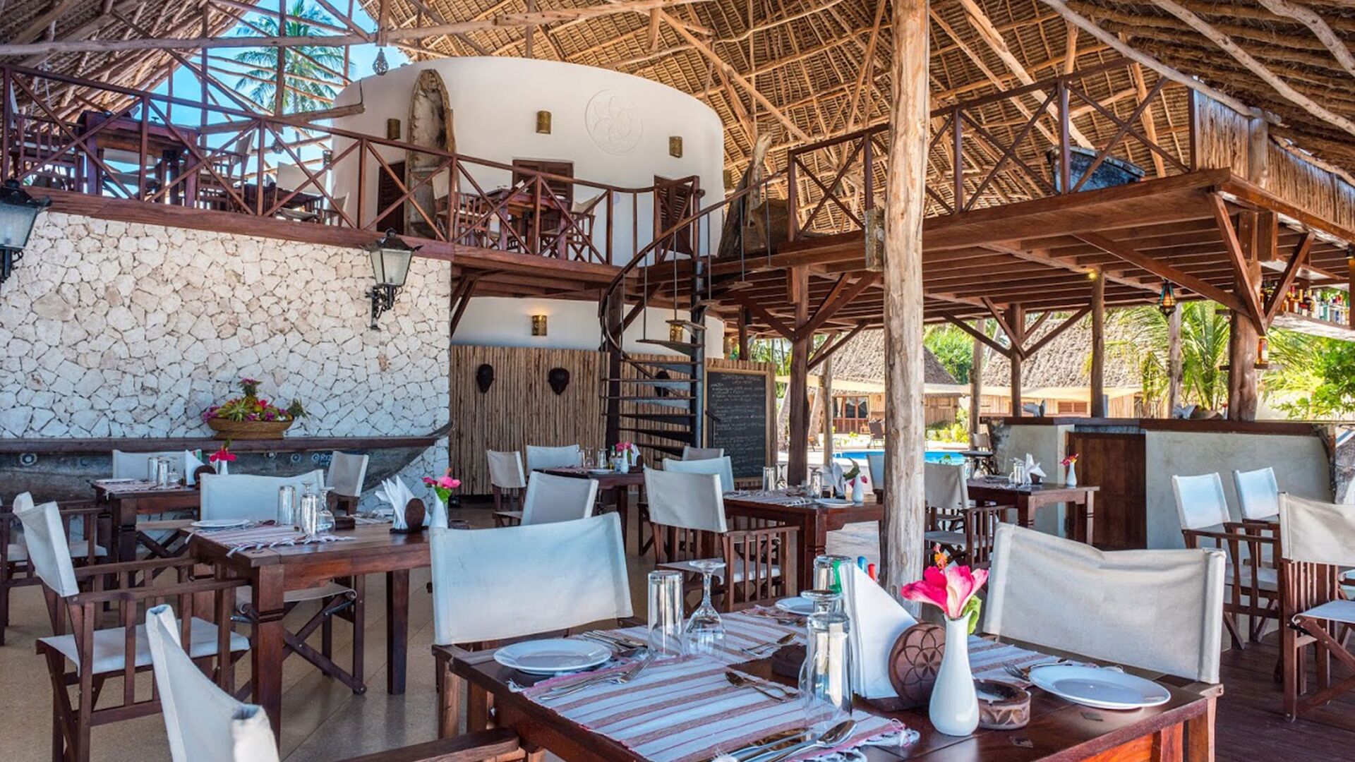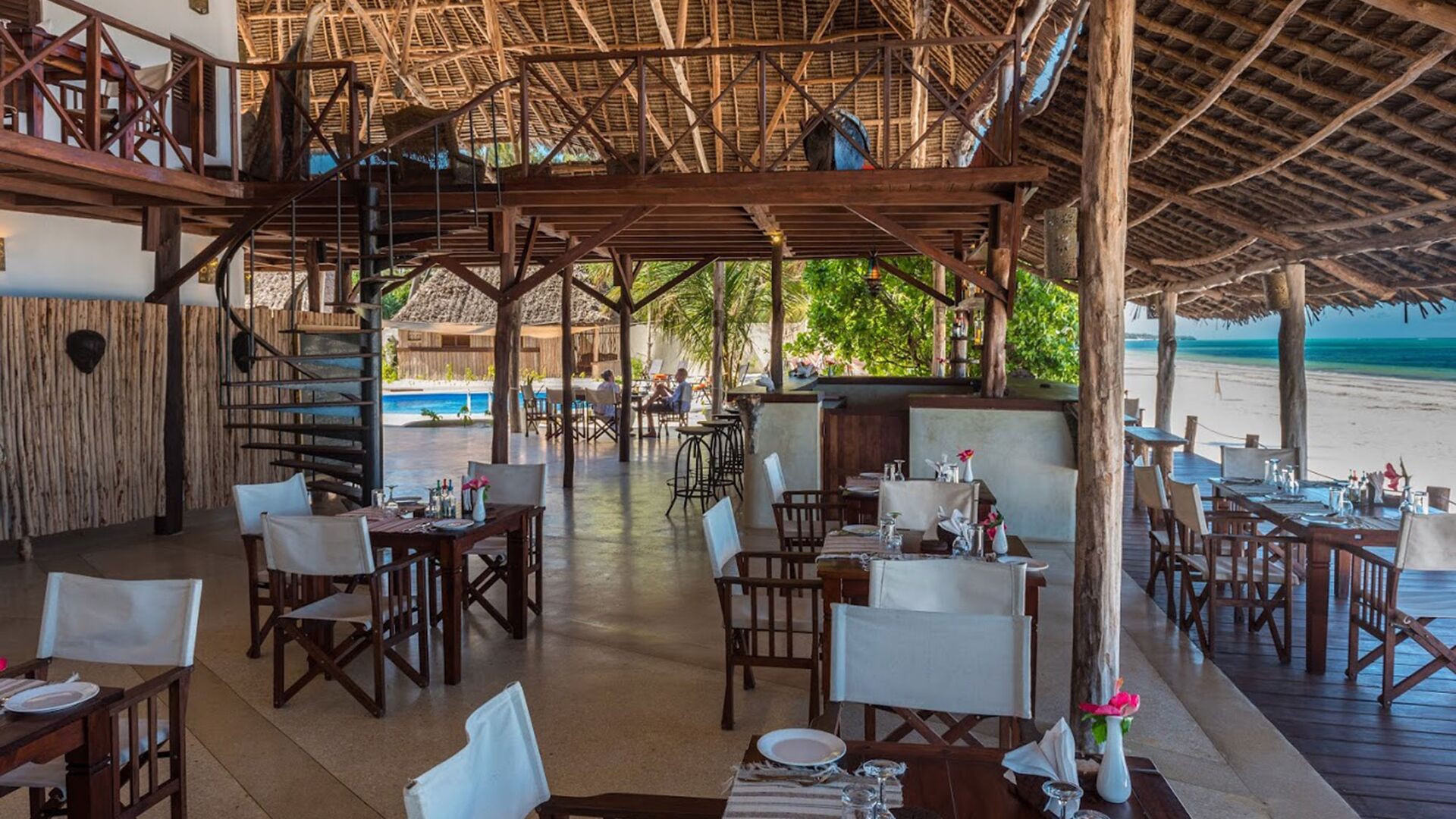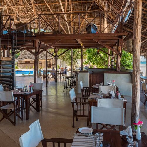 Hotellet har restaurant og bar lige ned til stranden og den er lys, luftlig og indrettet i original stil, hvor der ikke er gået på kompromis med udsigten til havet. Der er en ekstra etage på restauranten som er tiltænkt som et afslapningsområde, hvor man kan nyde den fantastiske udsigt til øen, Mnemba Island. Restauranten har et godt niveau og maden er af lokale producerede råvarer. De kulinariske traditioner man finder omkring det Indiske Ocean, i godt samspil med krydderier fra Zanzibar, gør man nyder fantastisk mad i smukke omgivelser. Baren har et godt udvalg af drinks, vin, øl og cocktails samt en god kaffe.