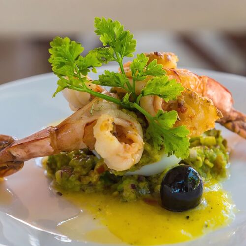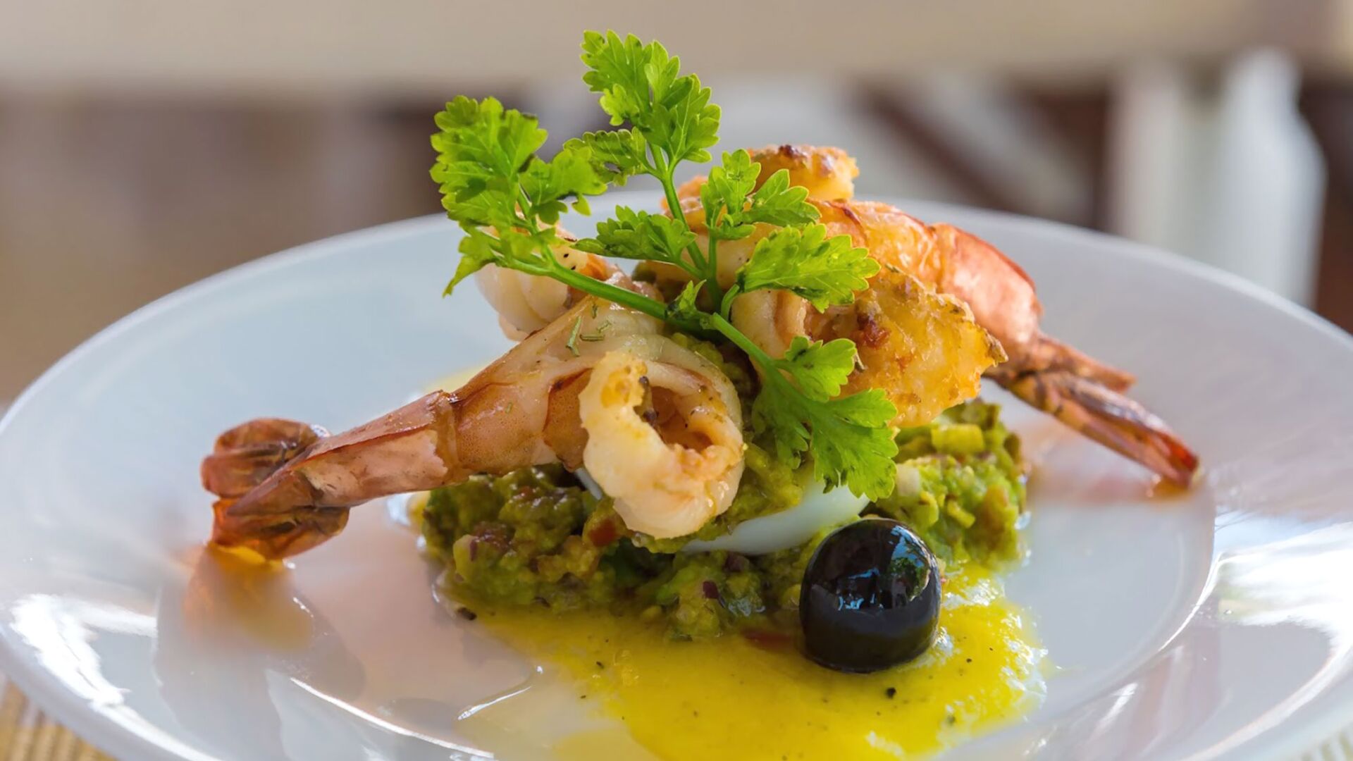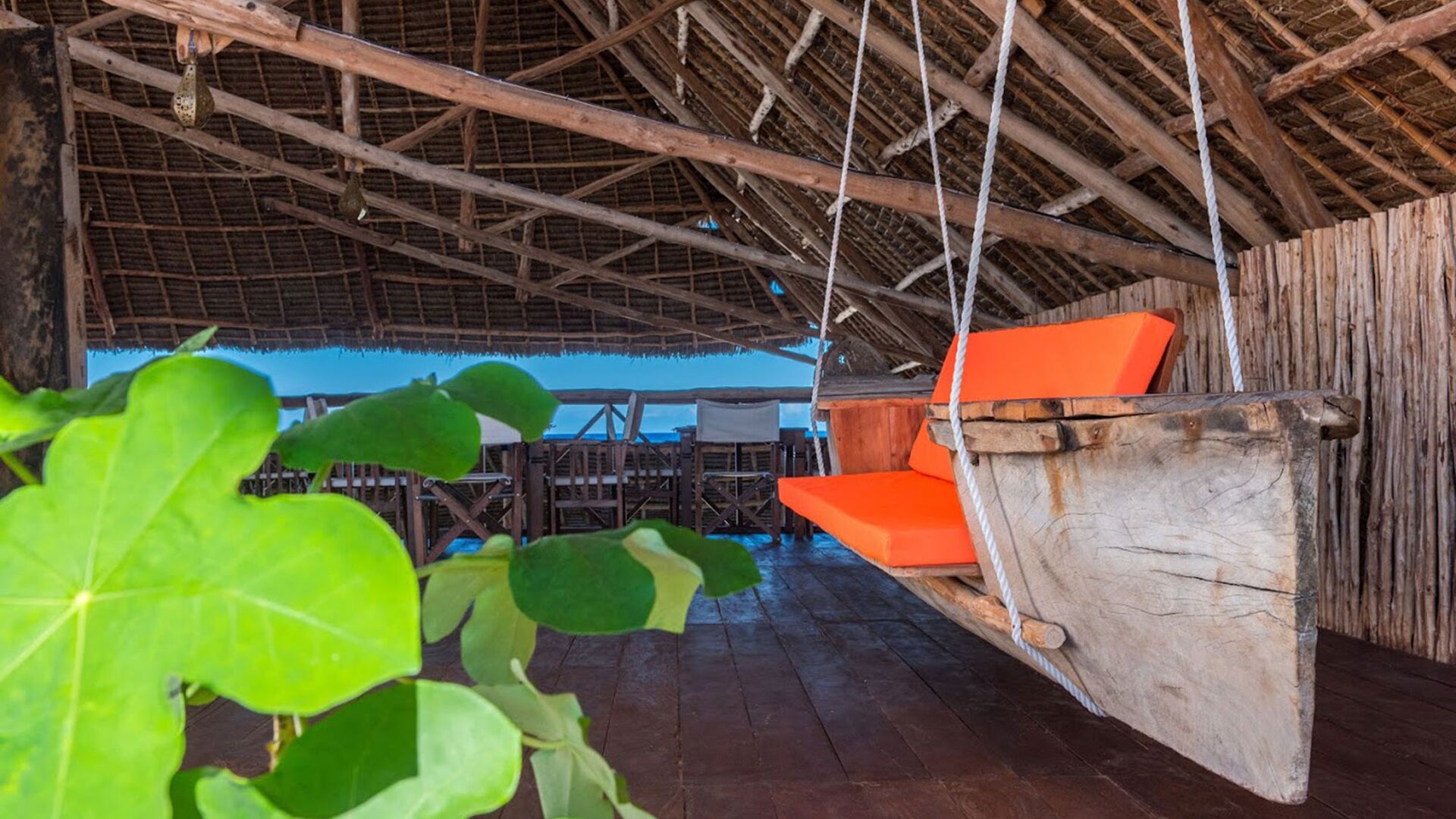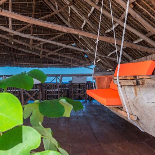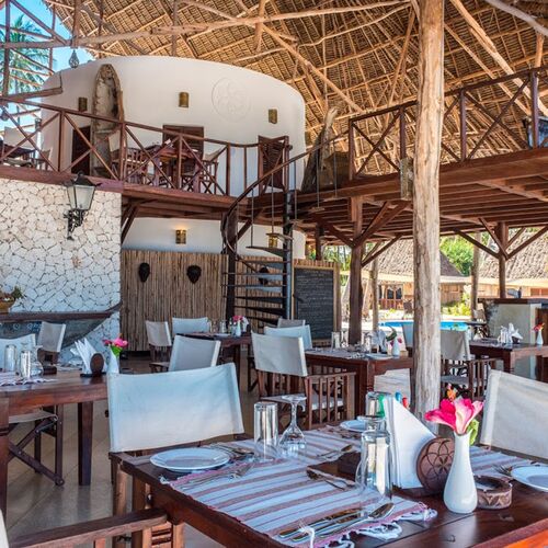 Hotellet har restaurant og bar lige ned til stranden og den er lys, luftlig og indrettet i original stil, hvor der ikke er gået på kompromis med udsigten til havet. Der er en ekstra etage på restauranten som er tiltænkt som et afslapningsområde, hvor man kan nyde den fantastiske udsigt til øen, Mnemba Island. Restauranten har et godt niveau og maden er af lokale producerede råvarer. De kulinariske traditioner man finder omkring det Indiske Ocean, i godt samspil med krydderier fra Zanzibar, gør man nyder fantastisk mad i smukke omgivelser. Baren har et godt udvalg af drinks, vin, øl og cocktails samt en god kaffe.
