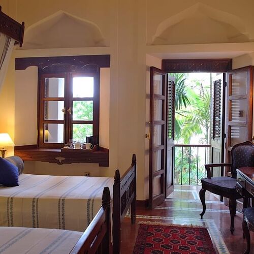Hotellet byder på i alt 51 værelser og suiter, hver enkelt designet til at være et roligt tilflugtssted fra det travle moderne liv og varmen i Stone Town. De høje lofter, skoddede vinduer og kølige hvide vægge skaber en følelse af luftighed, mens de buede nicher, antikke plader og traditionelt udskårne kurvevævemøbler med keramiske indlæg tilfører hvert rum en vidunderlig swahili-charme. Hertil kommer, at trælouvre døre åbner op til private altaner med uhindret udsigt over Det Indiske Ocean, hvor man virkelig kan lade sjælen flyve frit.