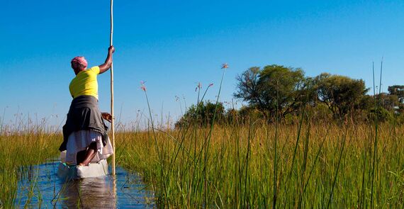 I kører ca. 60 km fra Maun ind i den sydlige del af Okavango-deltaet. Når I ikke kan køre længere ind i deltaet, møder I de lokale stammefolk, som tager jer videre i deres mokoros (traditionelt udhulede træstammer, men nu miljøvenlige glasfiber replica). Nu forsvinder motorstøjen, og I sejler stille og næsten lydløst gennem de smalle kanaler, der visse steder har tæt papyrus bevoksning langs bredderne og andre steder er mere åbent. Fuglelivet er mangfoldigt, og landskabet er fascinerende. Mange af de smalle kanaler er i tidernes morgen skabt af flodhestes vandrestier. I er i sandhed kommet til et af jordens mest fascinerende vådområder! I slår lejr på en lille ø, og bålet tændes mens natten falder på, og en imponerende stjernehimmel åbner sig. NB: Til de første to nætter i Okavango-deltaet bedes man pakke en lille taske, da kanoerne ikke kan medtage den fulde bagage. Den øvrige bagage bliver opbevaret på traileren i et sikkert område, og vil igen være til disposition på dag 5.