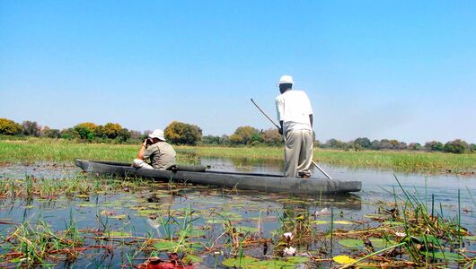 I kommer til udforske deltaet til fods på forskellige øer, og i mokoros hvis der er vand nok. Det gælder om at gå stille og være ét med naturen, så man ikke skræmmer vildtet. Guiderne er hjemmevante i deltaet, og de passer på jer med deres nedarvede viden og erfaringer om, hvordan man gebærder sig ved mødet med vilde dyr. De er ikke bevæbnede med andet end respekt og fornuft, og det skal i følge.