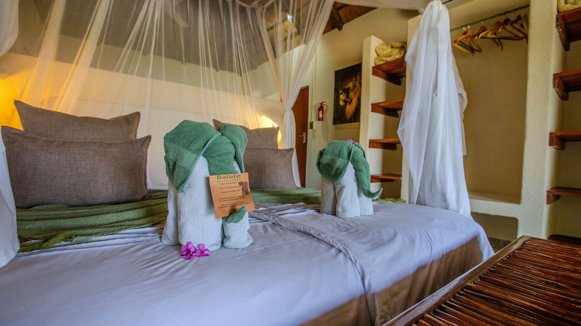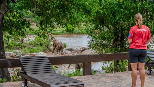 En Afrika safari i Balule River Lodge giver dig alle forudsætninger for at få netop den luksusferie, du drømmer om! Lodgen er smukt beliggende med udsigt over Greater Kruger National Park og Olifants River, og består af to gæstehuse med tre dobbeltværelser i hver, et hovedhus med spisestue, opholdsstue, bibliotek og stor fællesterrasse og "bomaen", som er vores udendørs spisested. Der er også swimmingpool og fitnessrum, samt en shop, hvor gæsterne kan købe afrikanske souvenirs og smykker, safari tøj, og postkort.