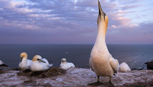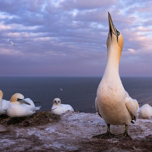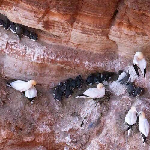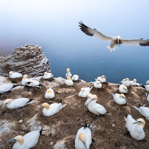 Her finder du en stor fuglekoloni bestående af tusindvis af havfugle med den store sulekoloni som centrum. Her kan vi komme tæt på sulerne mens de bygger deres reder, og flyver til og fra klippehylden helt uforstyrret. Vi har mulighed for at fotografere med alt fra vidvinkel til supertele og mulighederne for gode billeder er nærmest uendelige.