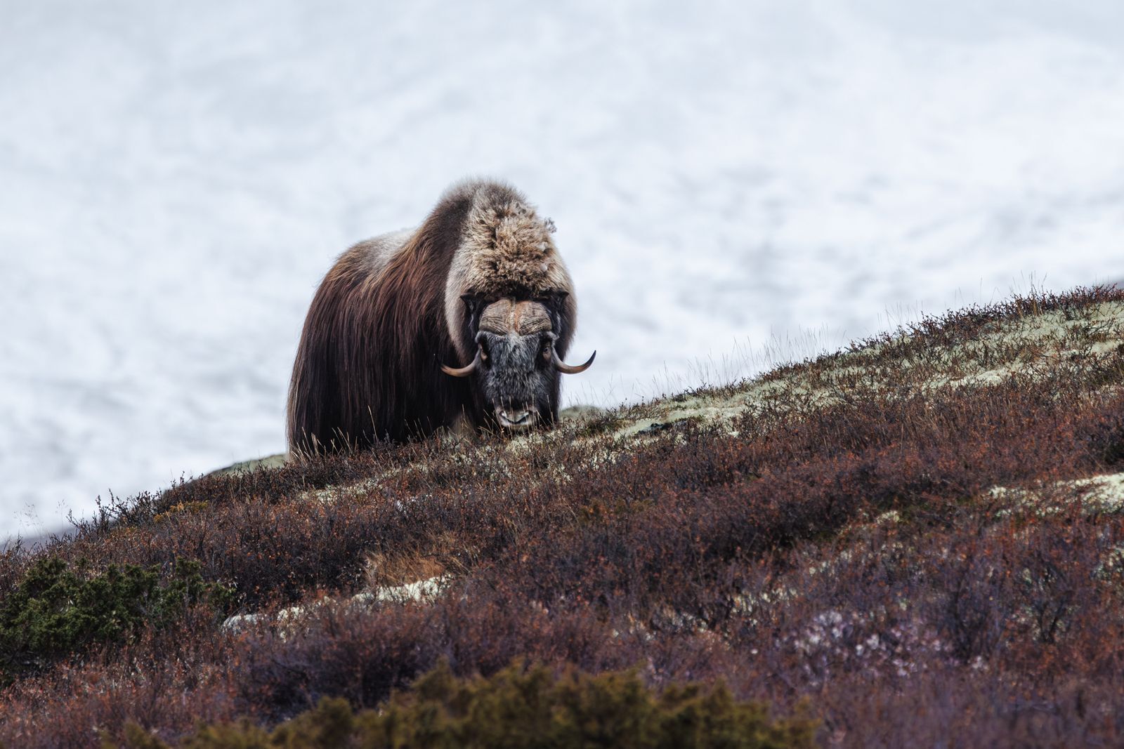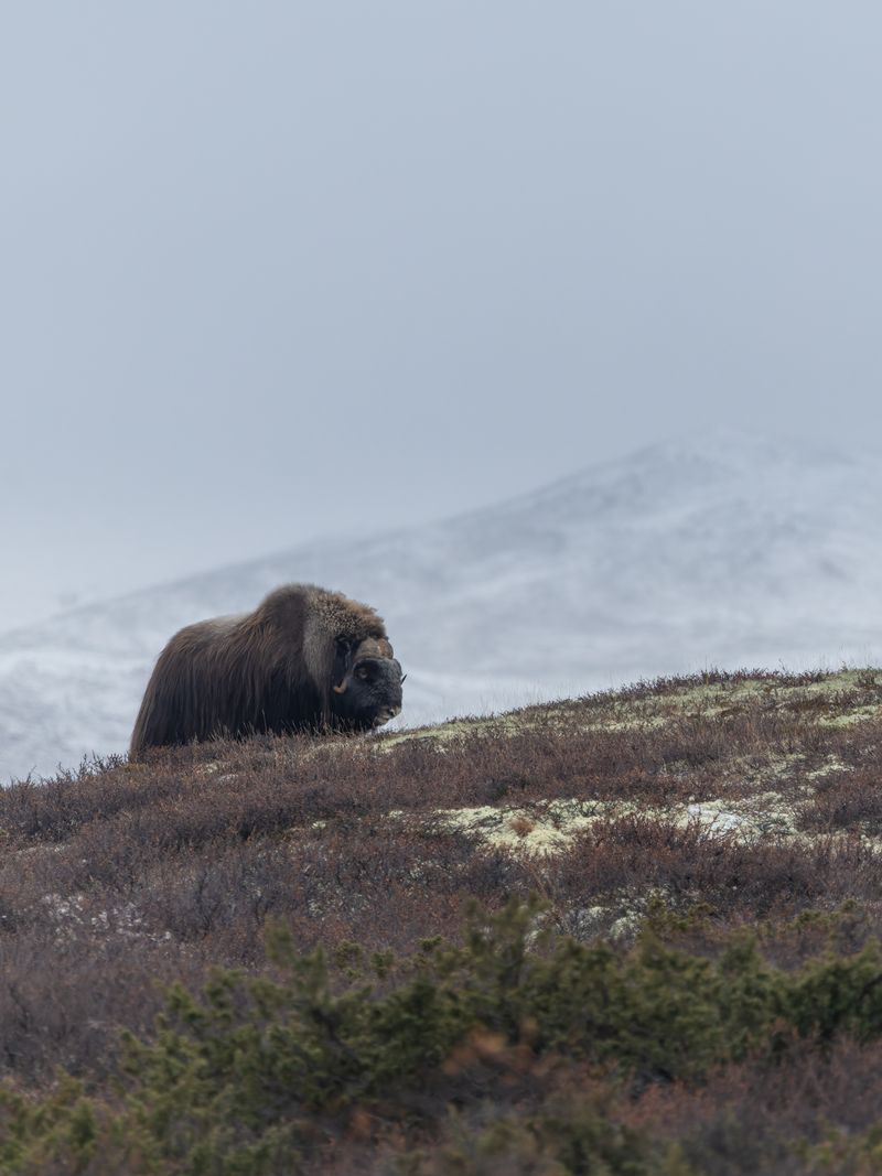 De næste tre dage er dedikeret fuldt ud til vandring og fotografering i Dovrefjells storslåede fjeldlandskab. Sammen med vores erfarne norske guide bevæger vi os til fods i områder, hvor der er gode chancer for at finde moskusokser. Den lokale guide, som står for sikkerheden og har licens til guiding på fjeldet, har et indgående kendskab til området og moskusoksernes bevægelsesmønstre, hvilket giver os de bedst mulige forudsætninger for både sikre og autentiske møder med dyrene.