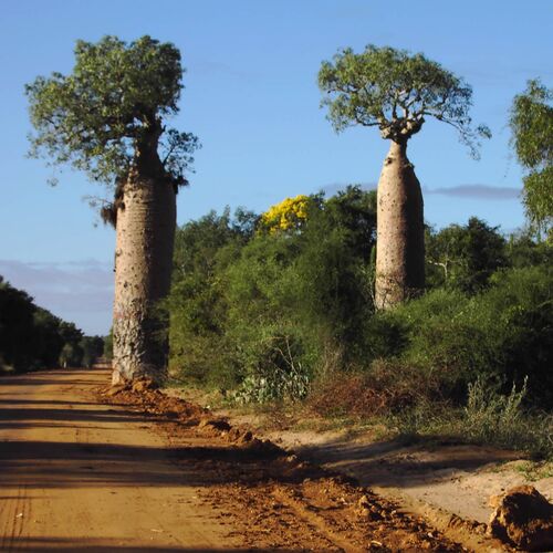 Herfra krydses øen via Isalo-nationalparken, med de imponerende sandstensbjerge, over til vestkysten ved Ifaty, hvor koralrevet og kystens mangrove møder det tørre ørkenlignende land mod syd, der domineres af tornekrat- og skov. Fra Ifaty flyves der tilbage til hovedstaden, så den lange køretur tilbage ad samme vej undgås.