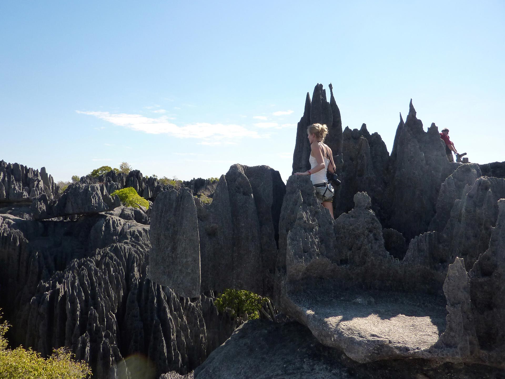 Efter morgenmaden går turen til de imponerende Tsingys, som først for nylig er blevet åbnet for offentligheden. Her kan I opleve de spektakulære kalkstensnåle, der danner en "stenskov" med tinder, som rejser sig op til 50 meter i højden. Disse formationer, kendt som tsingy, er en del af et betagende karstlandskab. I den sydlige del grænser det 72.300 hektar store reservat op til Manambolo-floden, og i øst ses stejle klipper på op til 400 meter.