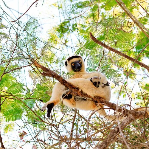 • Diademed sifaka – en af de smukkeste lemurer med hvid, gul og sølv pels