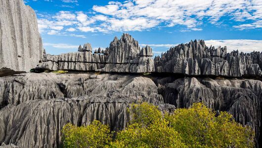 • Udsigten fra toppen af tsingy-tårnene giver dig et panorama over et grønt, fladt landskab så langt øjet rækker.