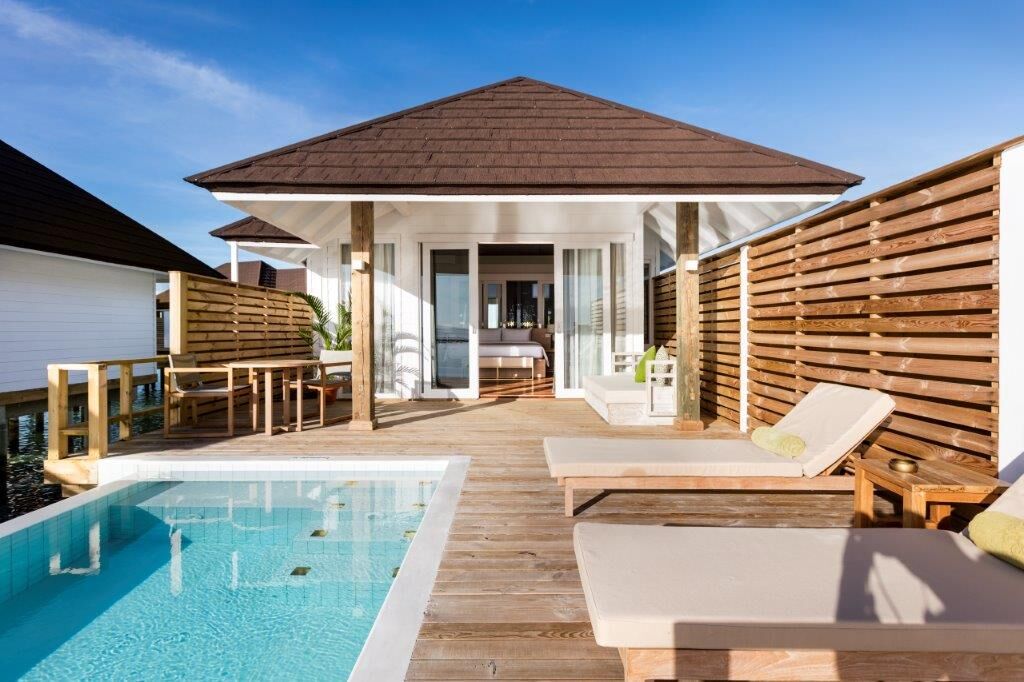 Under jeres ophold på Sun Siyam bliver I indkvarteret i "Villa på vandet". Disse villaer giver jer den ultimative luksus oplevelse, med al den komfort man kan ønske sig. Villaerne er bygget på pæle i vandet, og I kommer til at sove omgivet af det krystalklare ocean på alle sider. Villaerne er forbundet med træbro til øen Dream Island, og videre med træbro til Main Island. I disse villaer får I god plads, hele 112 m2 stilfuldt moderne indrettet i lyst træ og badeværelset i lyse farver. Nyd muligheden for at snorkle ud fra egen badebro, eller slæng jer i poolen med udsigt ud over lagunen.