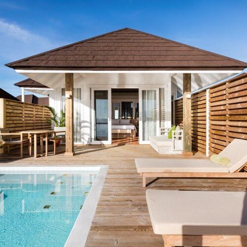 Nyd roen og lyden af vandet omkring jer. I denne værelses kategori får I top luksus og god plads i værelset. Slap af med en god bog i liggestolen på veranda lige over vandet. I har egen badebro fra villaen, og det indbyder til en dukkert i det klare vand. Find snorkeludstyret frem og udforsk fiskene som svømmer omkring villaen. Forkæl dig selv med spa-behandling i en af de overdådige spa hytter. Eller udforsk menu kortet hos en af de mange restauranter på Sun Siyam.
