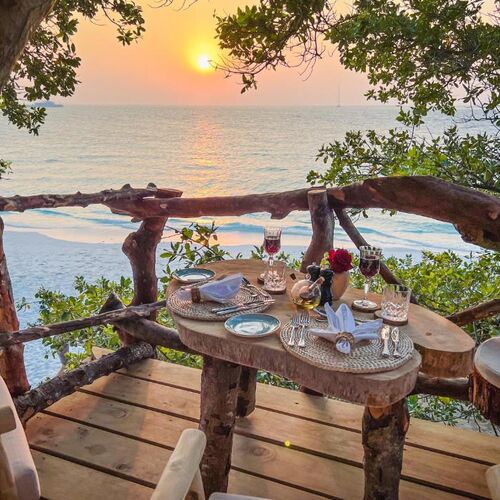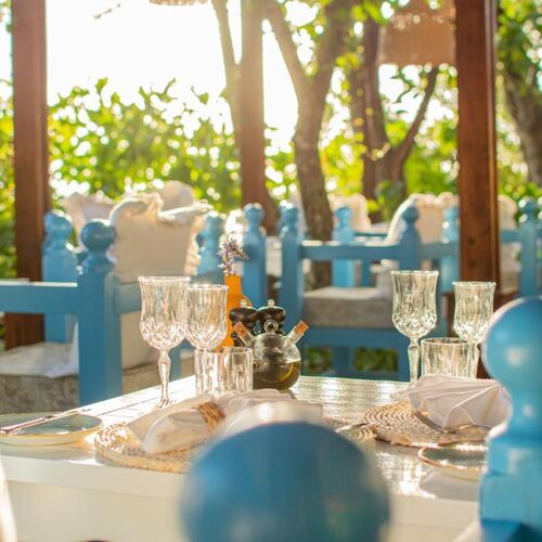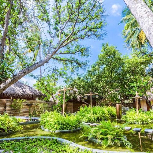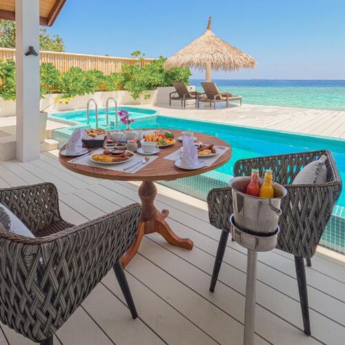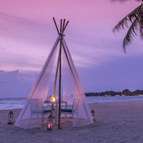 Sid ved vandkanten og nyd morgenmad, frokost eller middag i den moderne og smukke restaurant Maaga med udsigt over den smukke lagune. Eller få arrangeret en privat spiseoplevelse på stranden.
