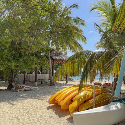 Der er check ind kl. 14.00 og fortvivl ikke hvis I kommer ind med et morgenfly. Tiden kan fordrives med at hvil i en af liggestolene eller gå på opdagelse på den lille charmerende ø.