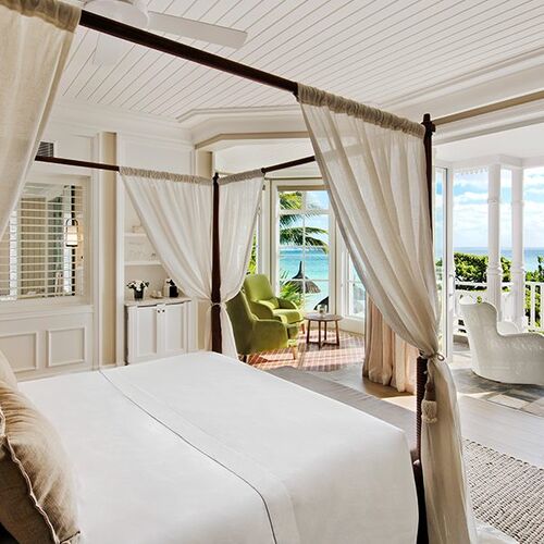 Dette 5-stjernede hotel på sydkysten er bygget i elegant kolonistil og renoveret i 2017. Hotellet er navngivet efter den berømte irske naturalist, Charles Telfair som boede i området i det 19. århundrede. Hotellet byder bl.a. på 1 km uberørt strand, butler-service i alle suiter, eksklusiv wellness i deres Seven Colours Spa, en opvarmet swimmingpool og en lang række restauranter med forskellige gourmet oplevelser. Der er 158 suiter på hotellet, fra 62-104 m2 i størrelse. Alle værelser er rummelige med dejligt naturligt lys indfald. De er moderne indrettet med flot interiør og den elegante kolonistil er bevaret. Værelserne har udsigt enten til de flotte haver eller smuk hav- og strandudsigt.