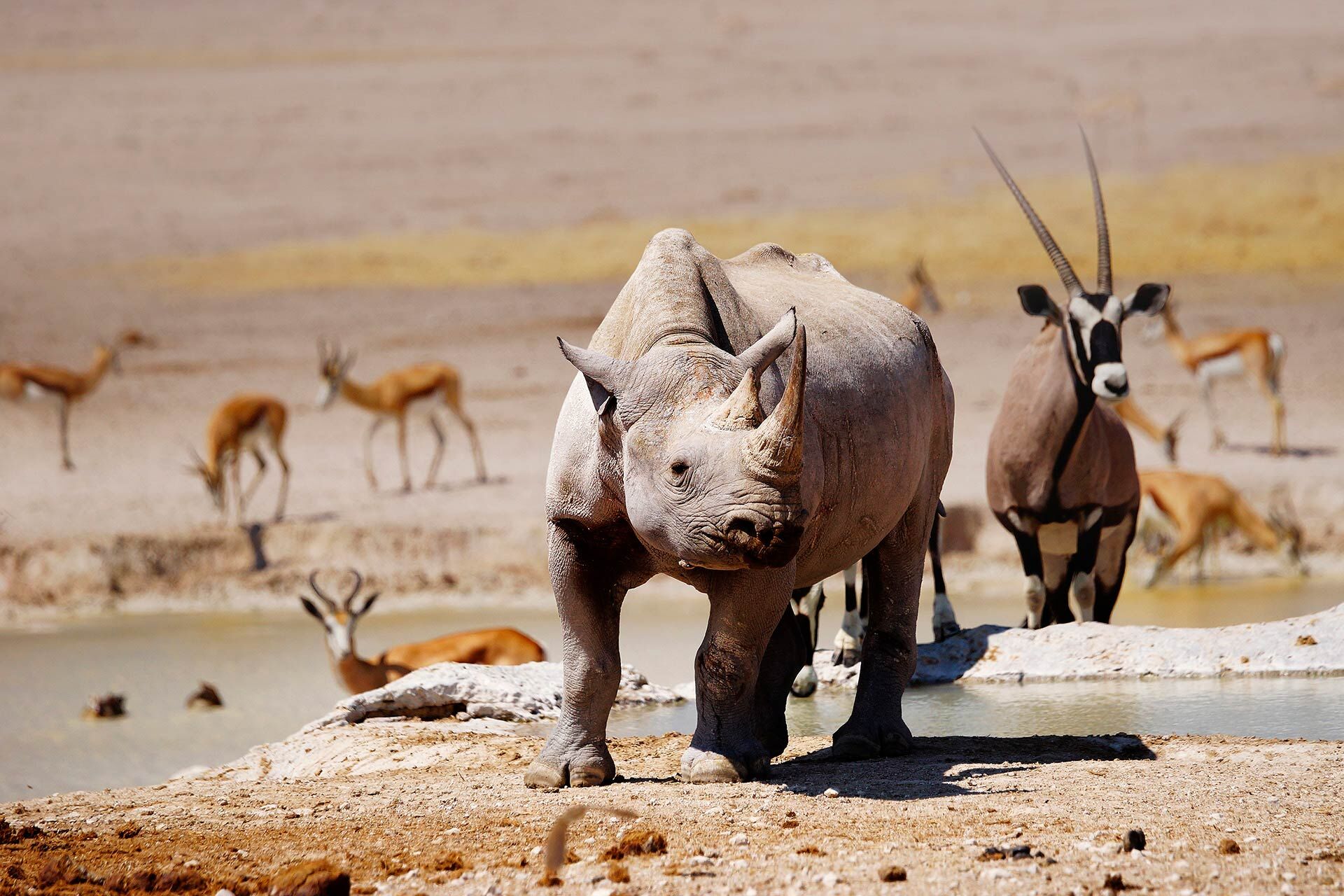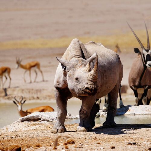 De vilde Naukluft bjerge er et paradis for vandrere. Man må ikke glemme Etosha National Park med dens skinnende, udtørrede saltsø og store bestand af vildt som hovedattraktion. Ikke mindst i vores sommer og efterår har man fremragende muligheder for at opleve løve, elefant, næsehorn, giraf, zebra og mange forskellige antilopearter, hvoraf oryx-antilopen er mest karakteristisk for dette tørre område.
